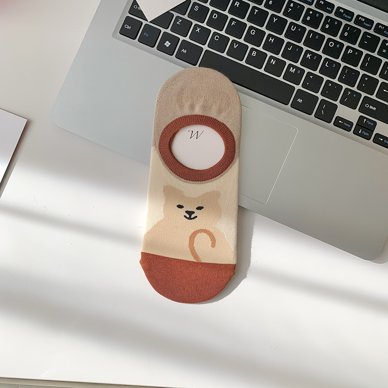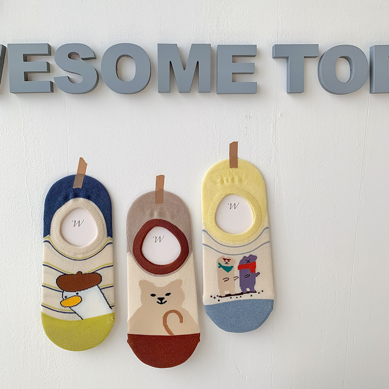 25 봄 여름 MEKKI 독특한 그래피티 보트 양말 심플하고 다재다능한 만화 일러스트 디자인이 들어간 힐이 없는 보이지 않는 양말스토어 가기