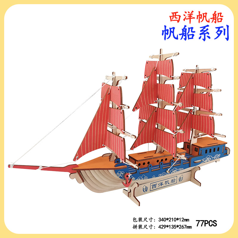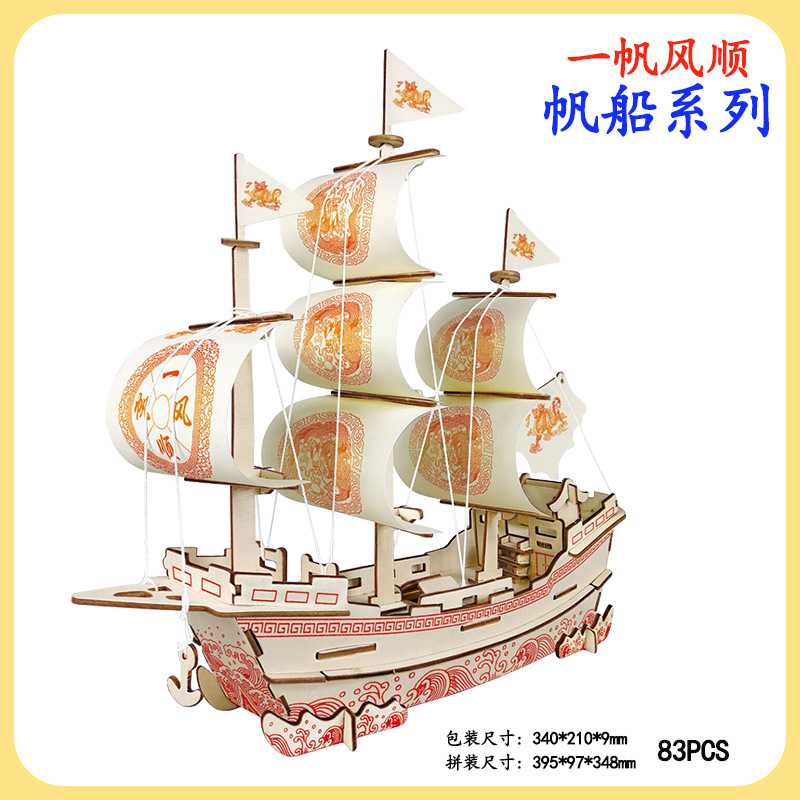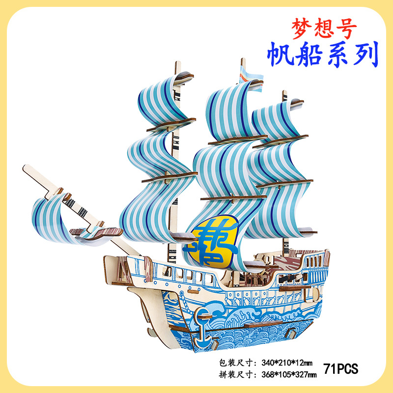 공장 도매 나무 3DIY 입체 퍼즐 어린이 수제 범선 항해 모델 선물 장난감 활동 재료스토어 가기