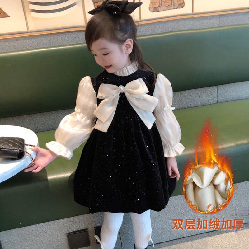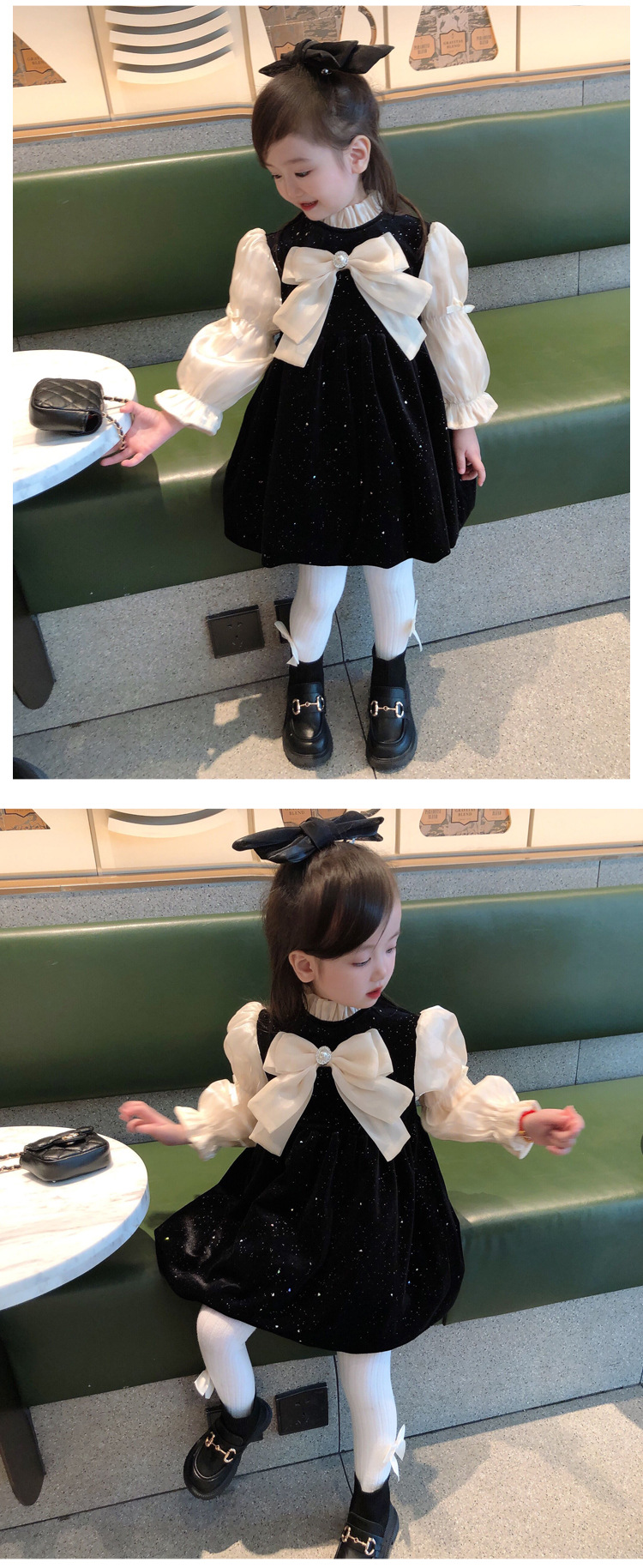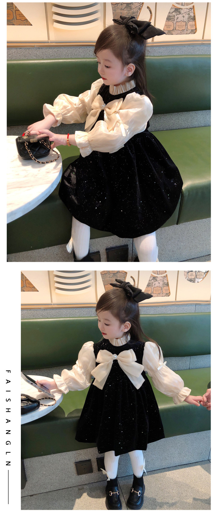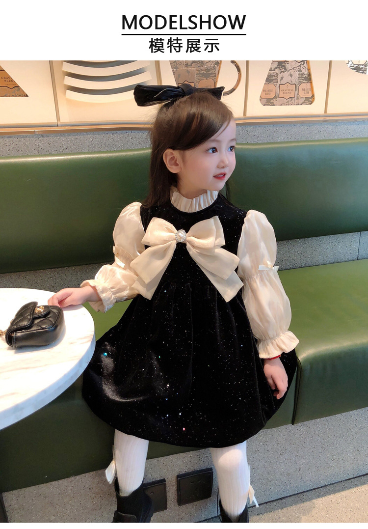 여자 봄, 가을 드레스 프랑스 스타일 아동 의류 2025 새로운 검은 색 아기 소녀 어린이 봄 공주 드레스스토어 가기