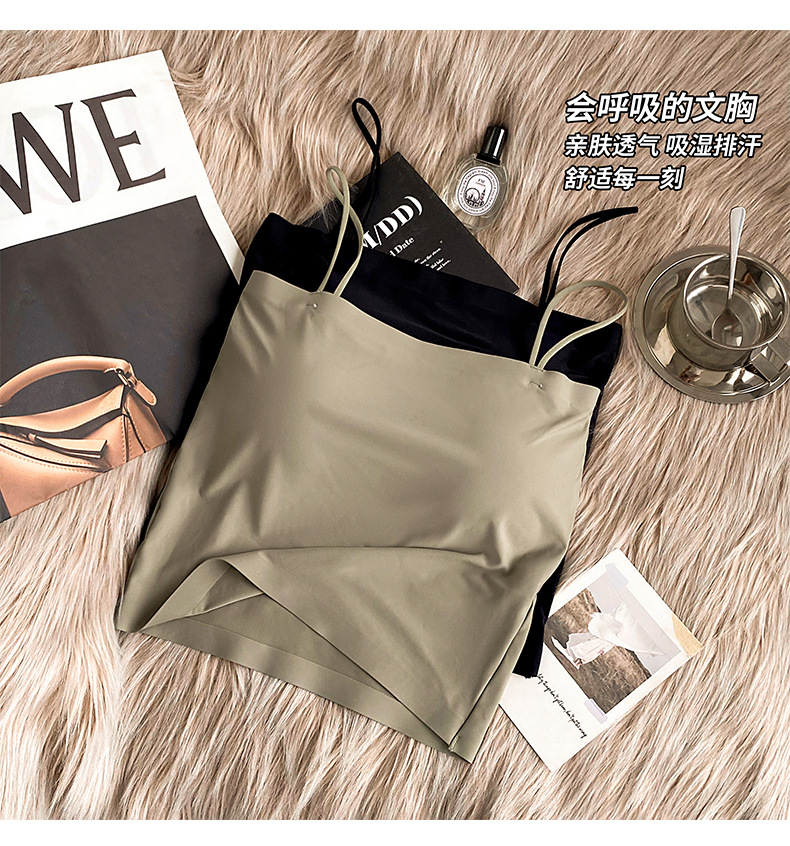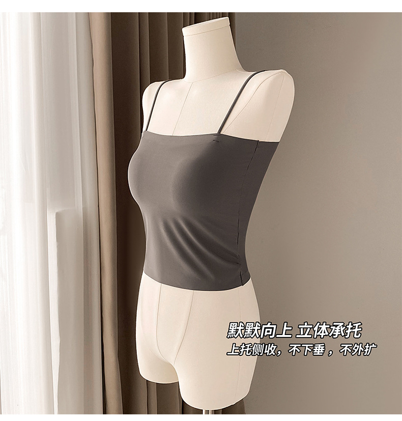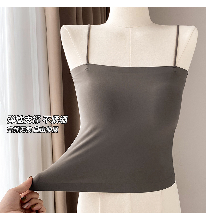 여성용 가슴 패드가 있는 얼음 실크 아름다운 등 캐미솔 여름 이너웨어 일체형 노출 방지 심리스 튜브 탑을 직접 판매하는 제조업체스토어 가기