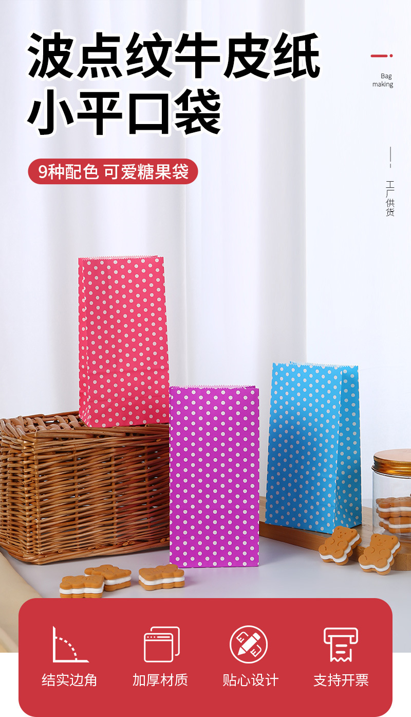 재고 물방울 무늬 플랫 입 사탕 가방 할로윈 파티 플랫 입 선물 종이 가방 크래프트 종이 선물 포장 가방