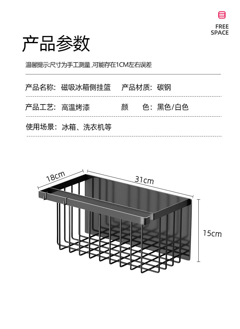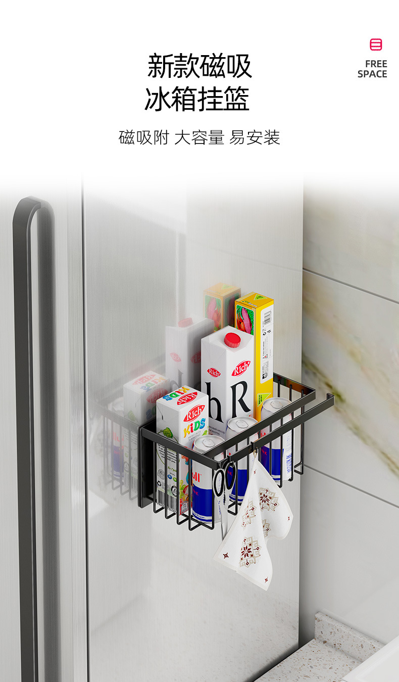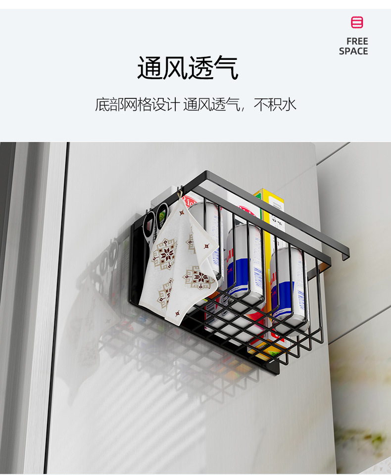 펀치없는 자기 흡수 냉장고 보관 랙 측면 매콤한 랙 벽걸이 주방 교수형 바구니 다기능 보관 선반스토어 가기