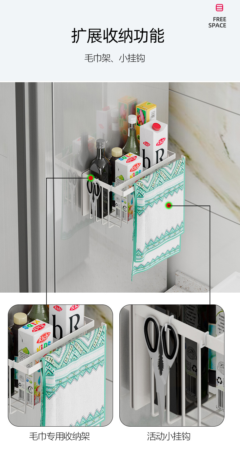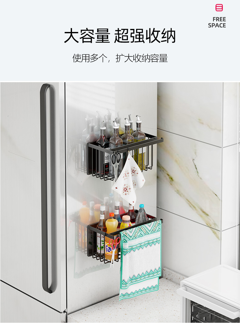 펀치없는 자기 흡수 냉장고 보관 랙 측면 매콤한 랙 벽걸이 주방 교수형 바구니 다기능 보관 선반