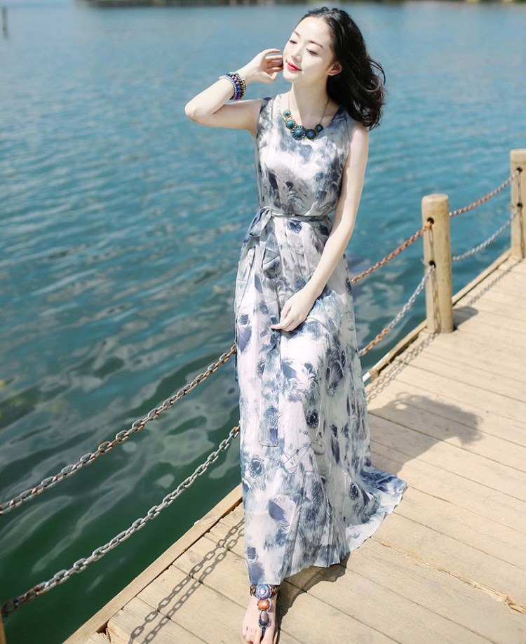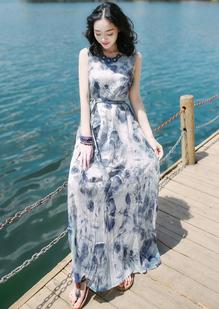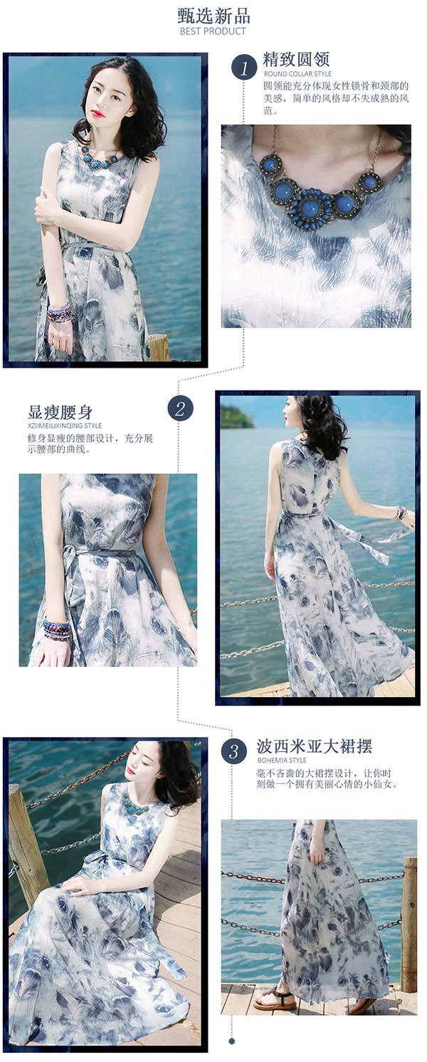 보헤미안 원피스 여자의 여름 긴 원피스 2023 새로운 해변 휴가 인쇄 민소매 스트랩 비치 원피스스토어 가기