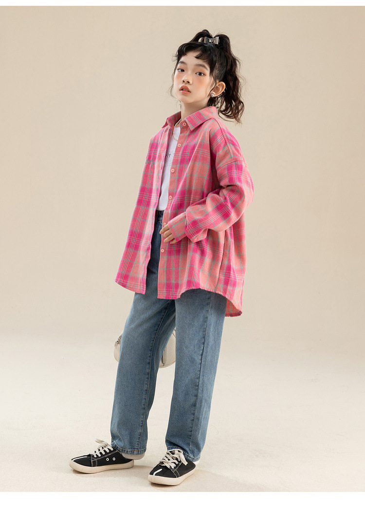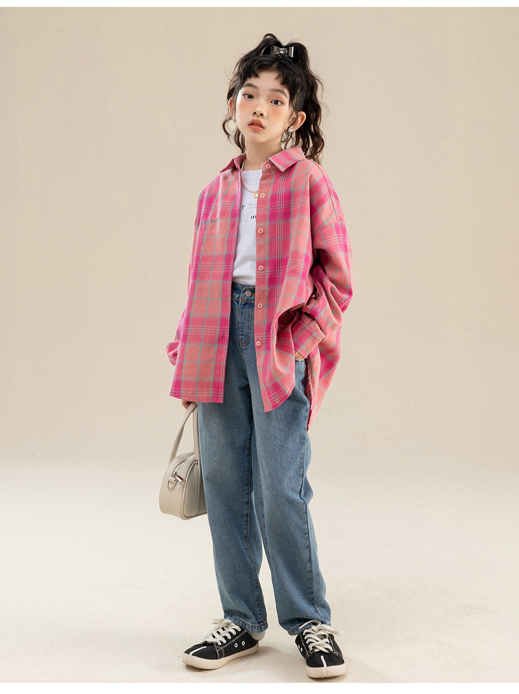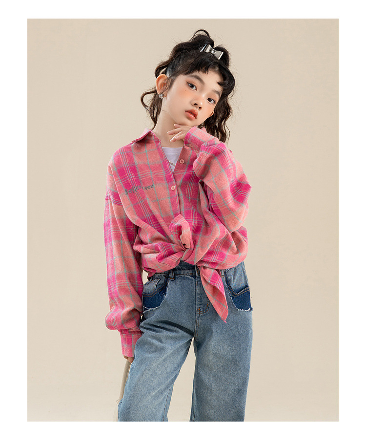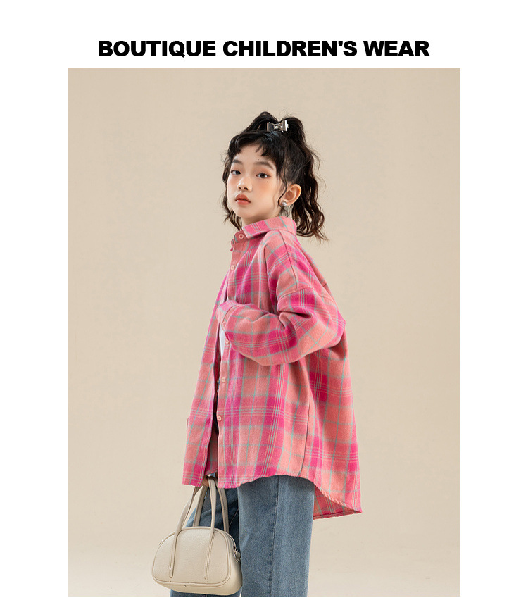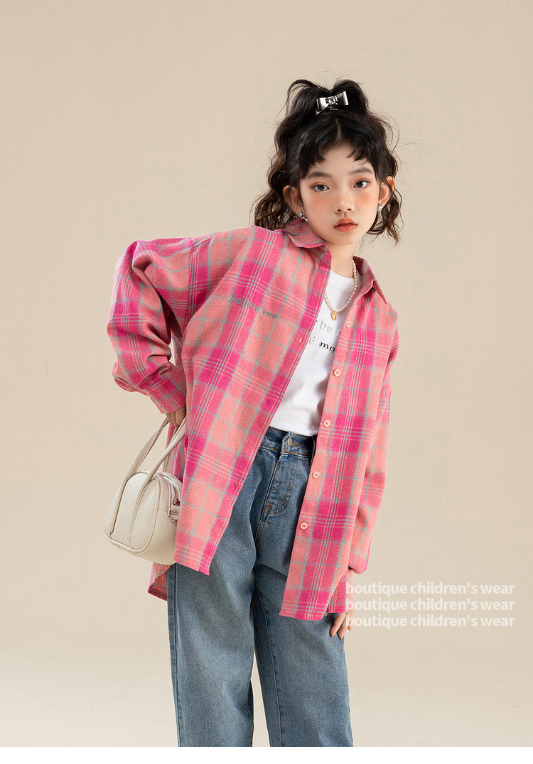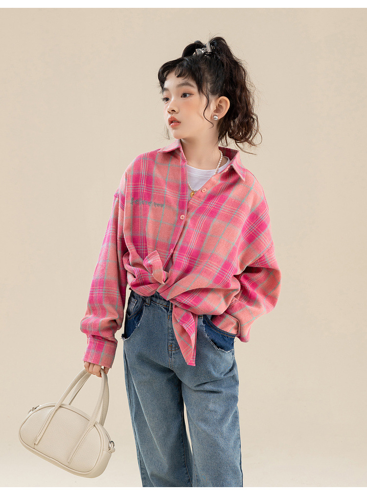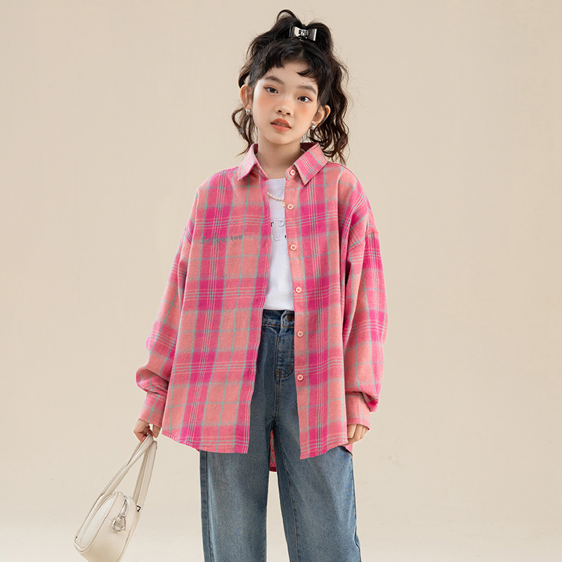 여자 격자 무늬 셔츠 2025 새로운 큰 어린이 봄, 가을 유행 작은 셔츠 어린이 가을 패션 거리 셔츠스토어 가기