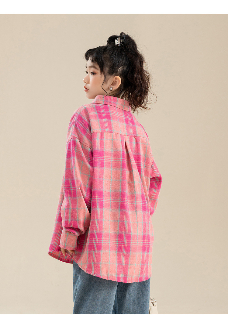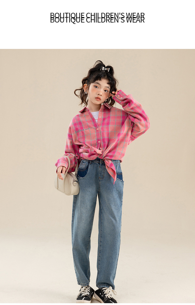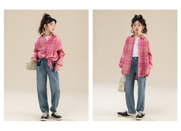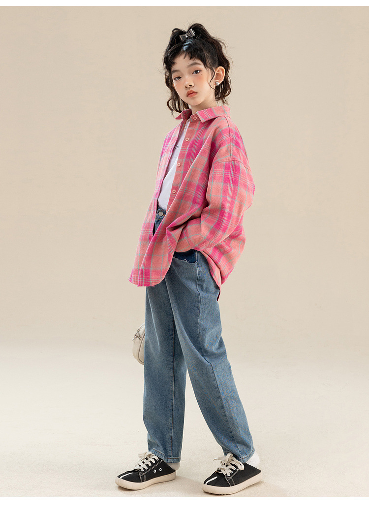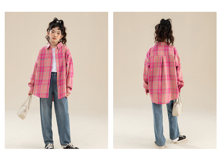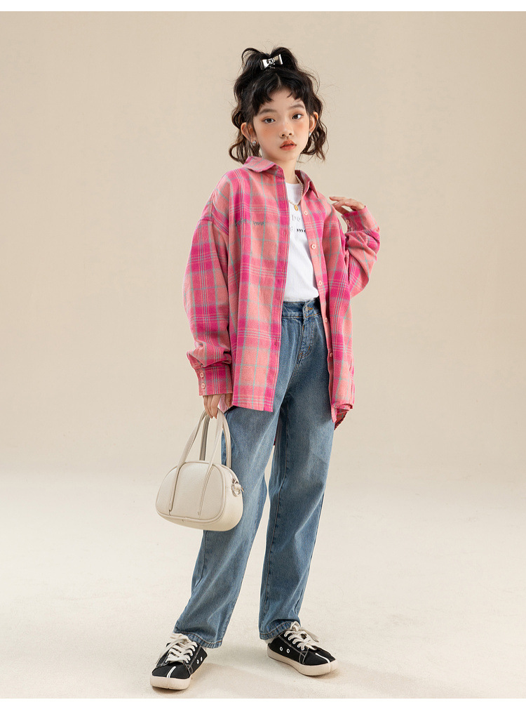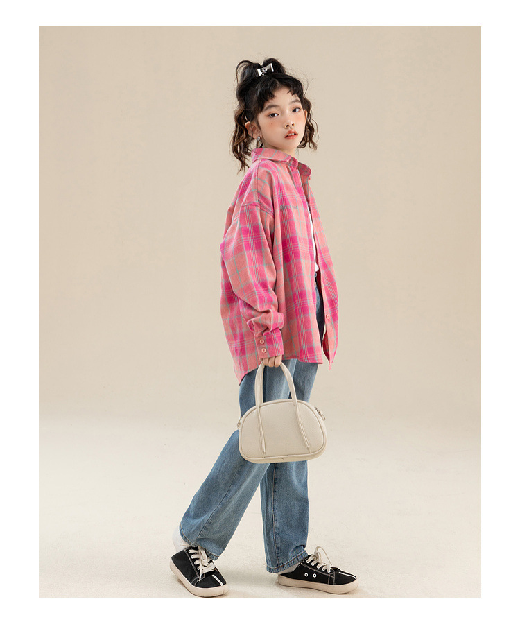여자 격자 무늬 셔츠 2025 새로운 큰 어린이 봄, 가을 유행 작은 셔츠 어린이 가을 패션 거리 셔츠스토어 가기