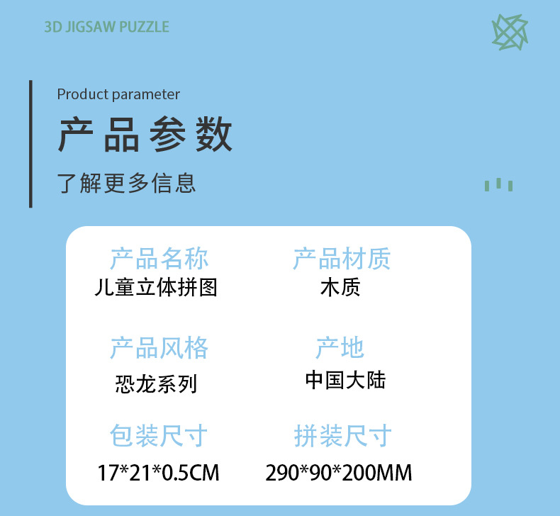 3D 입체 직소 퍼즐 도매 공룡 모델 어린이 교육 장난감 조립 교육용 수제 DIY 나무 직소 퍼즐스토어 가기