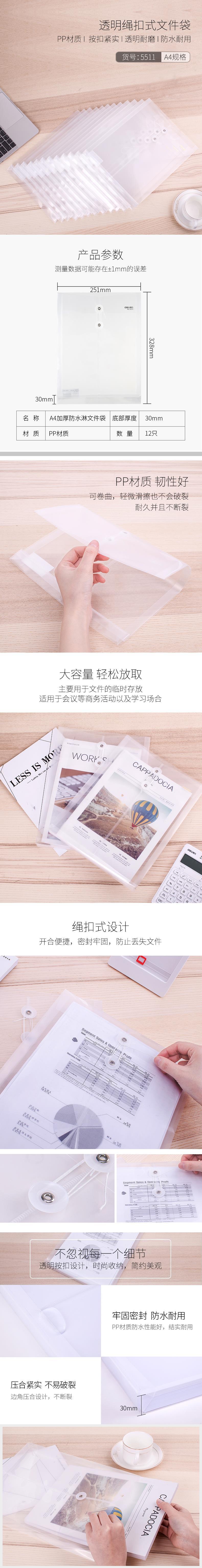 델리 5511 방수 파일 가방 A4 플라스틱 파일 가방 투명 이력서 가방 데이터 영수증 보관