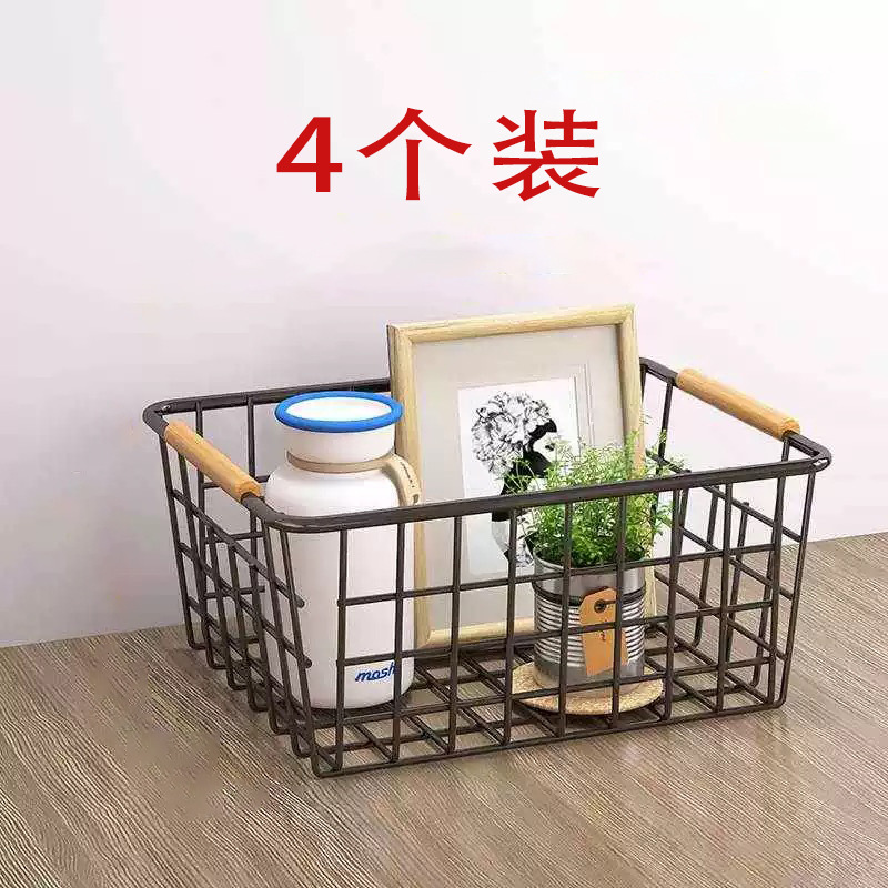 • 나무 손잡이 걸이 바구니 4팩 블랙