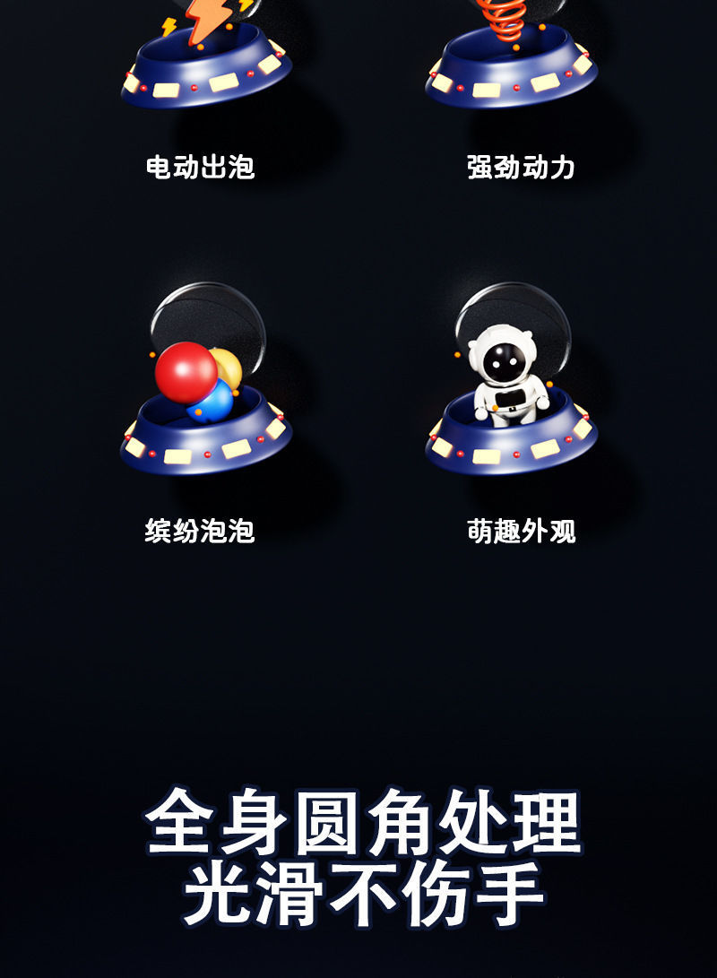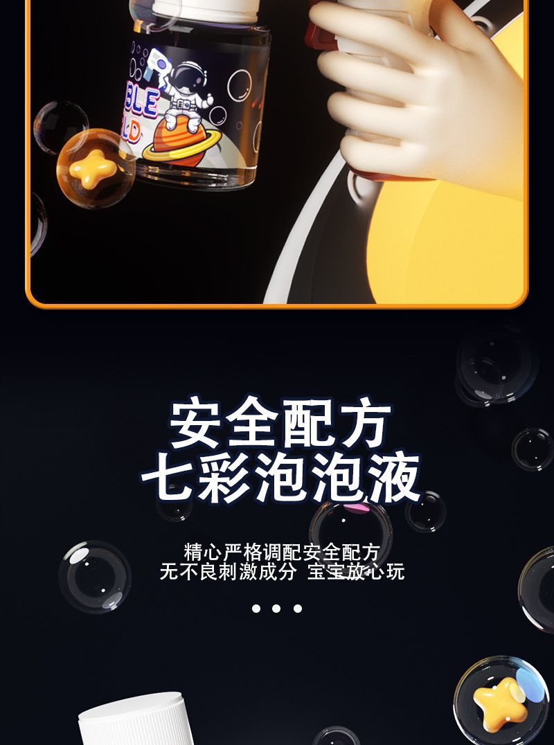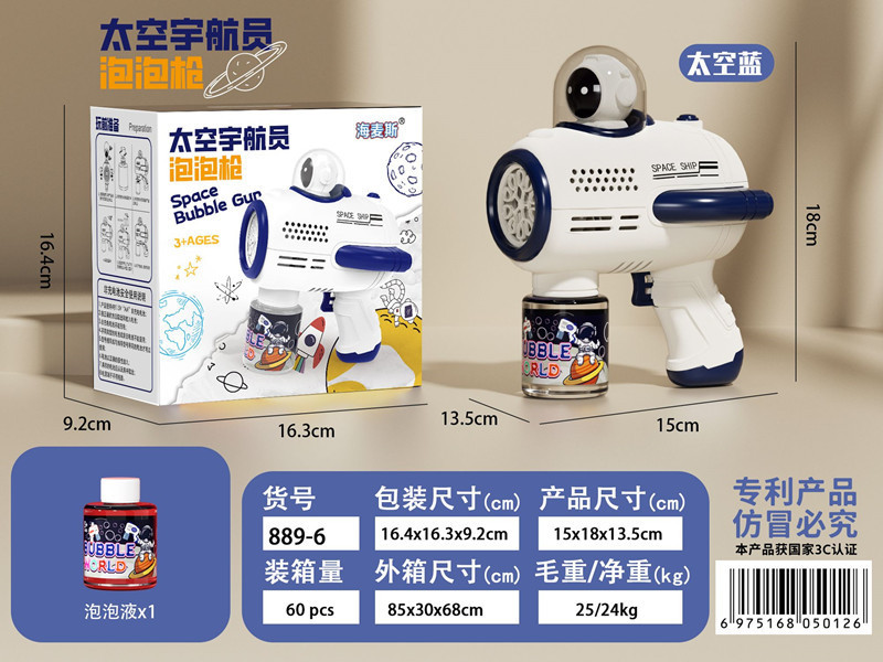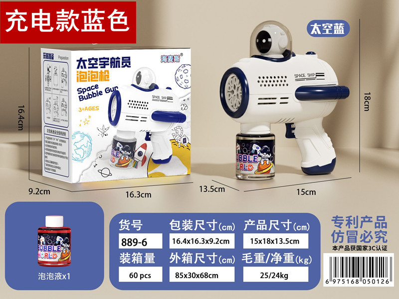 • 10홀 충전식 라이트 스페이스 버블 머신 [블루] 버블 워터 1병 포함