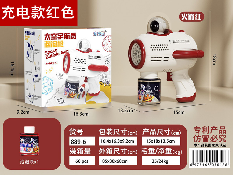 • 10홀 충전식 라이트 스페이스 버블 머신 [빨간색] 버블수 1병 포함