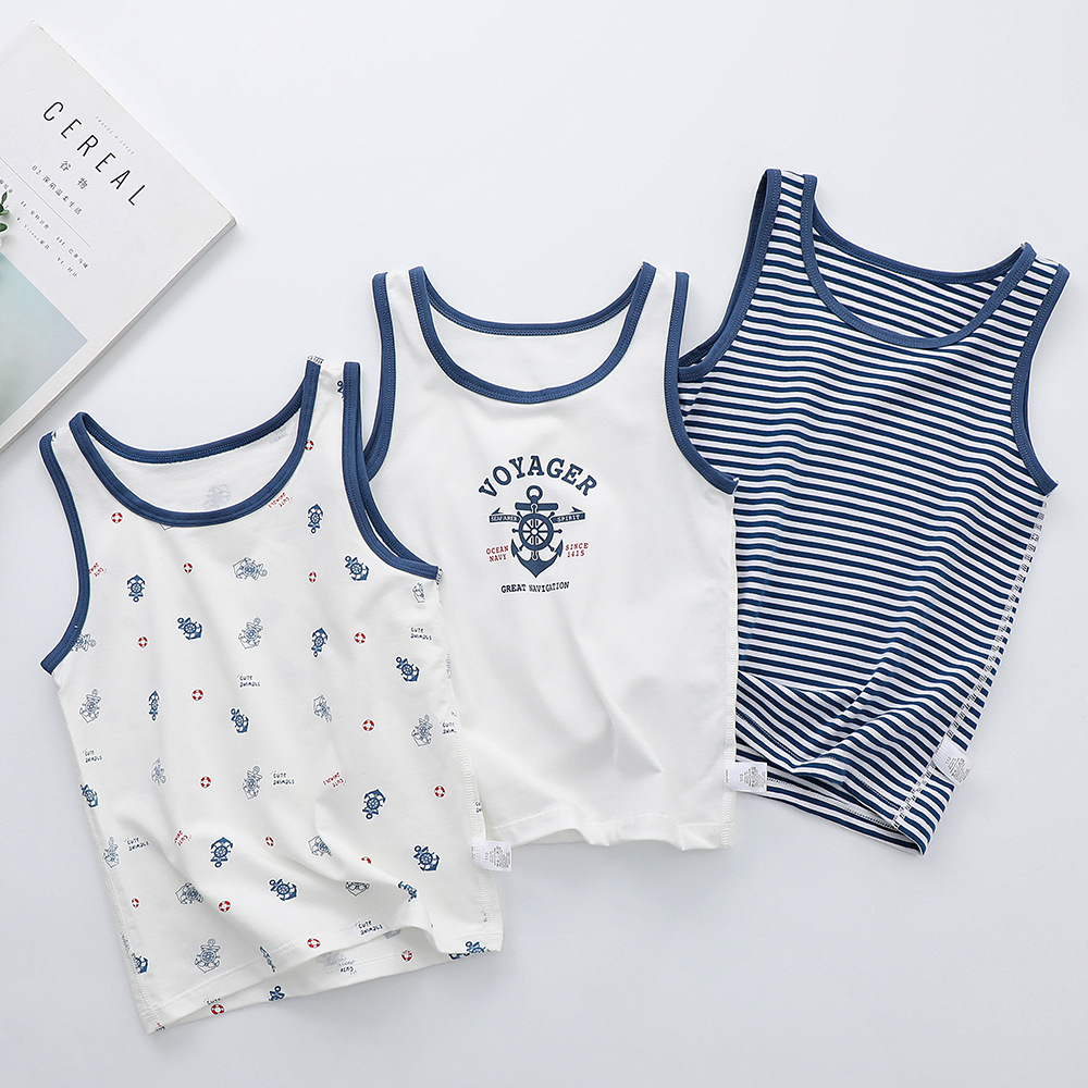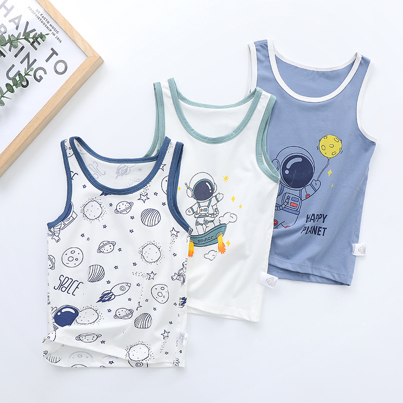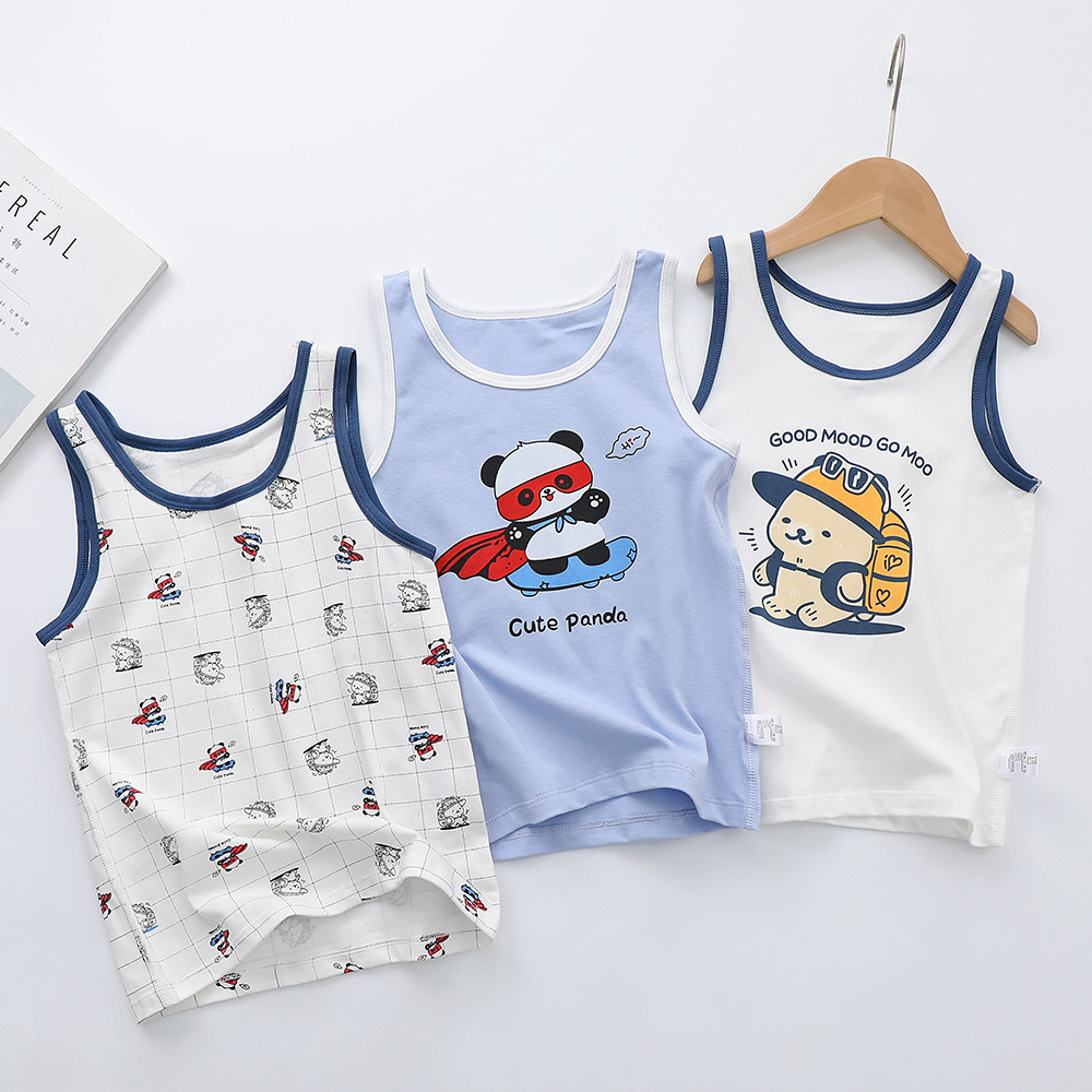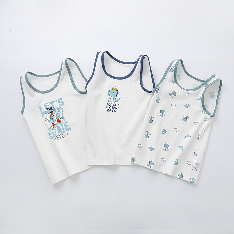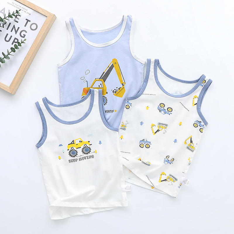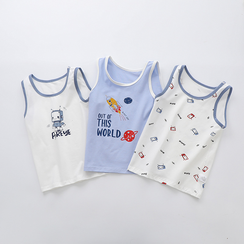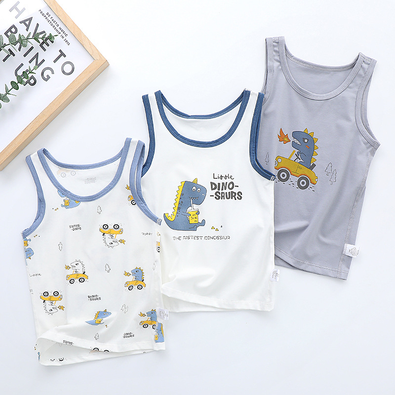 3 피스 여름 새로운 뼈없는 어린이 조끼 면 만화 인쇄 소년의 간단한 민소매 탑