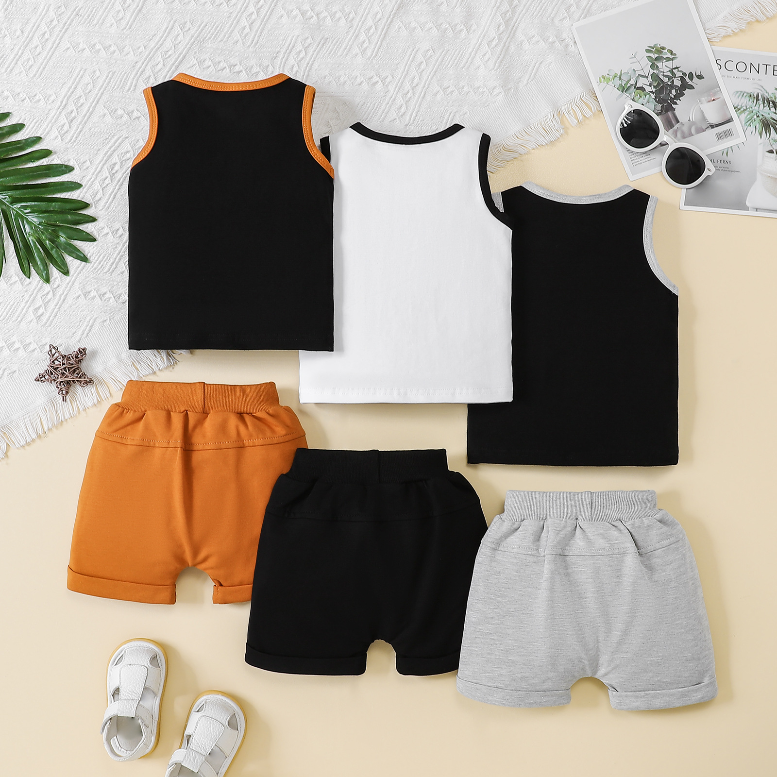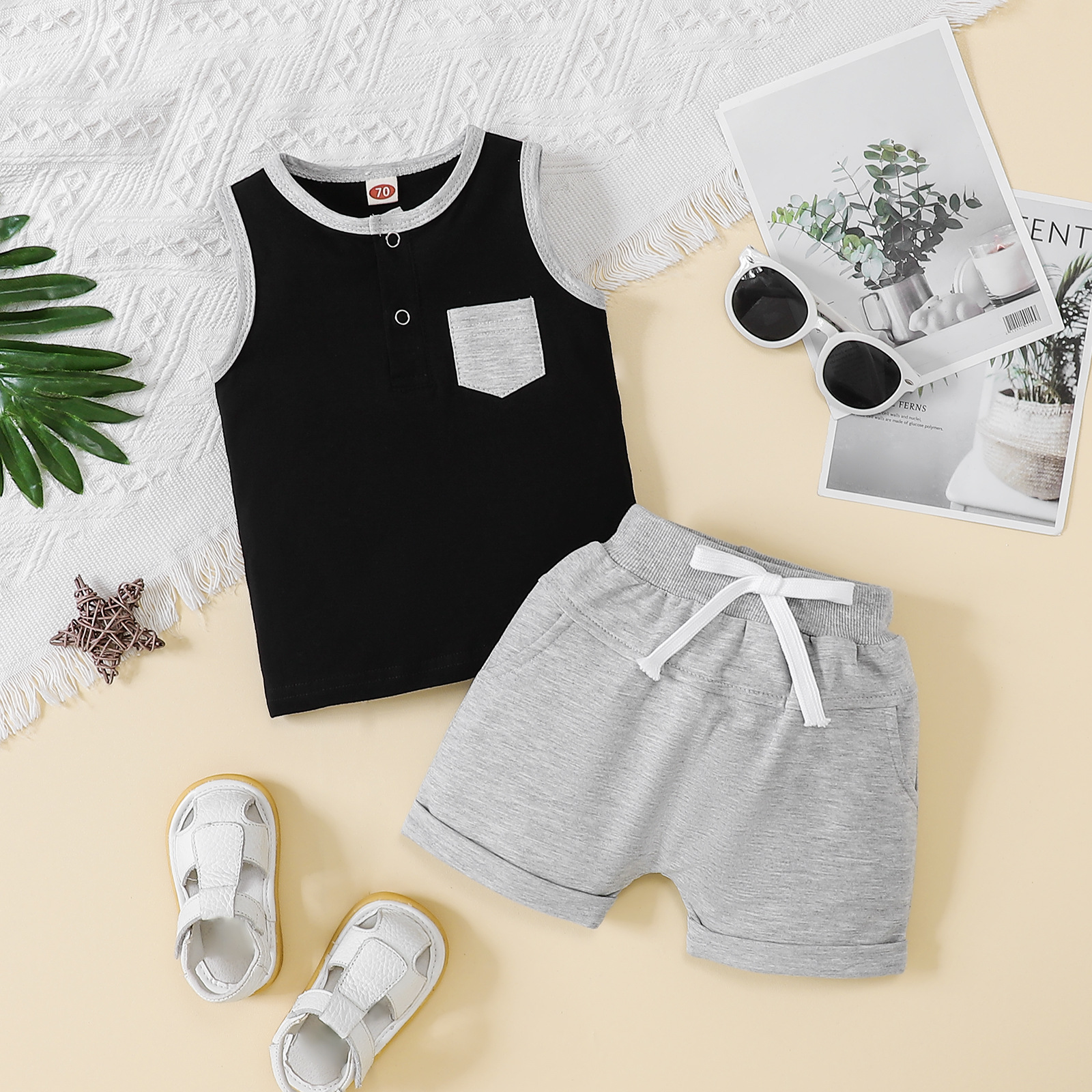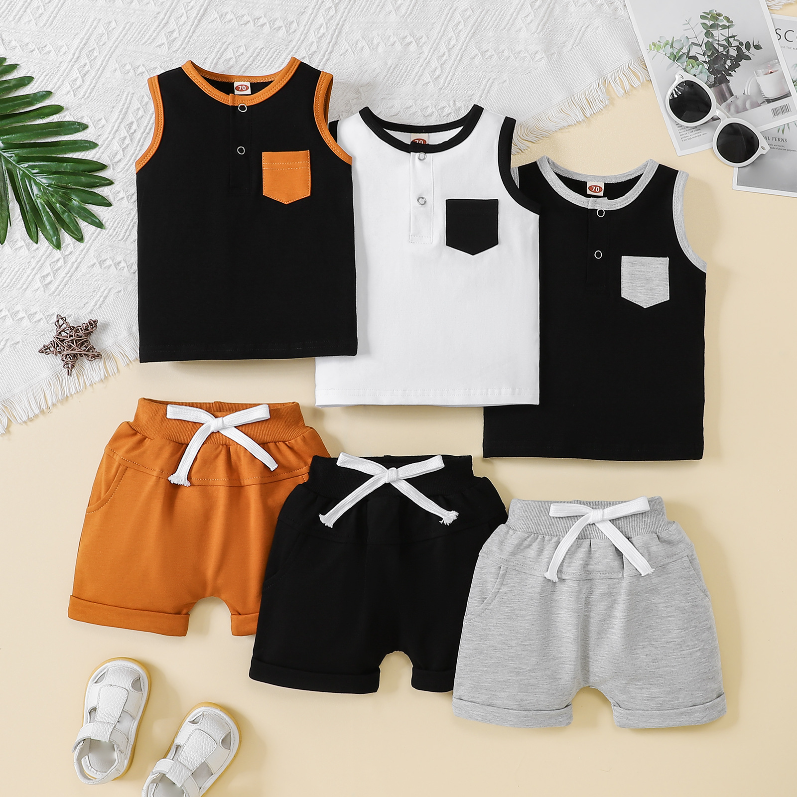2025년 신상 남아 패션 조끼 세트, 유아 여름옷, 스포츠 단색 투피스 세트, 원피스 배송스토어 가기