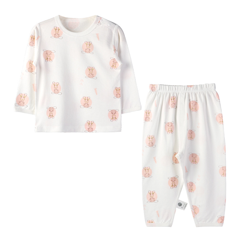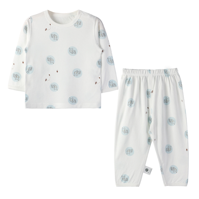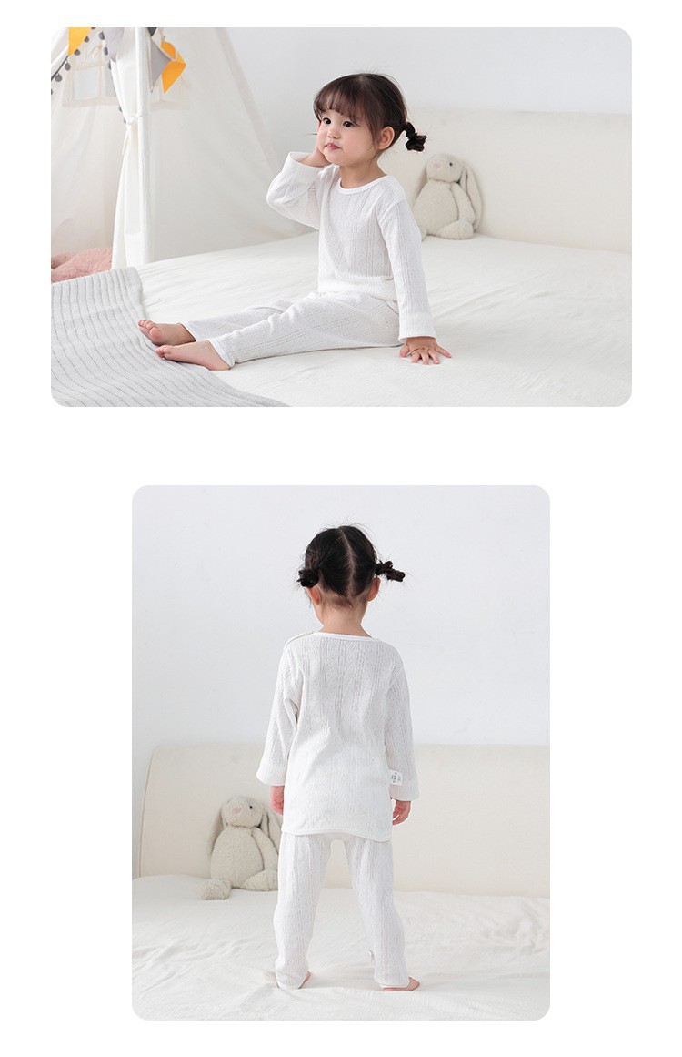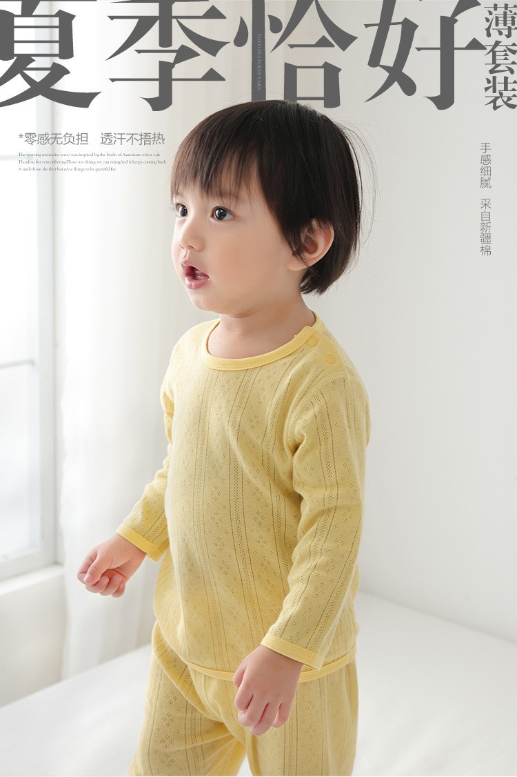 아기 얇은 가을 옷과 긴 바지 분할 세트 봄과 여름 단색 아기 속옷 2 피스 어린이 가정 옷 잠옷