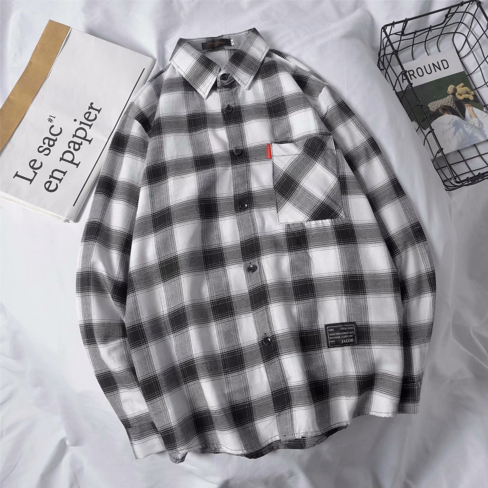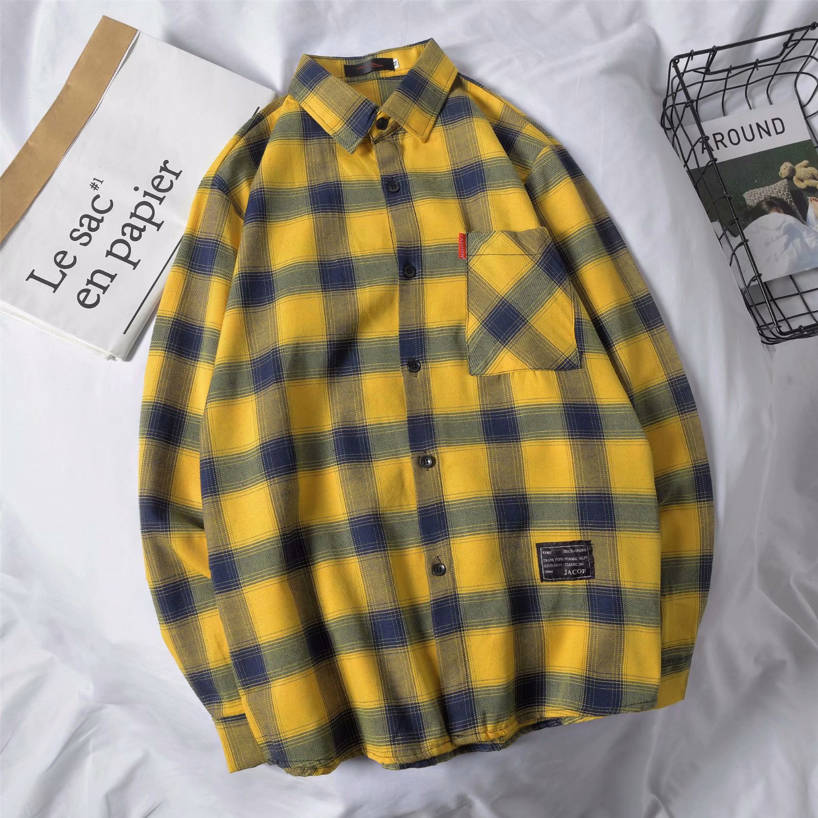 격자 무늬 셔츠 남자의 긴 소매 신상품 홍콩 스타일 가을 커플 학생 십대 한국 스타일 느슨한 남자 셔츠 재킷스토어 가기