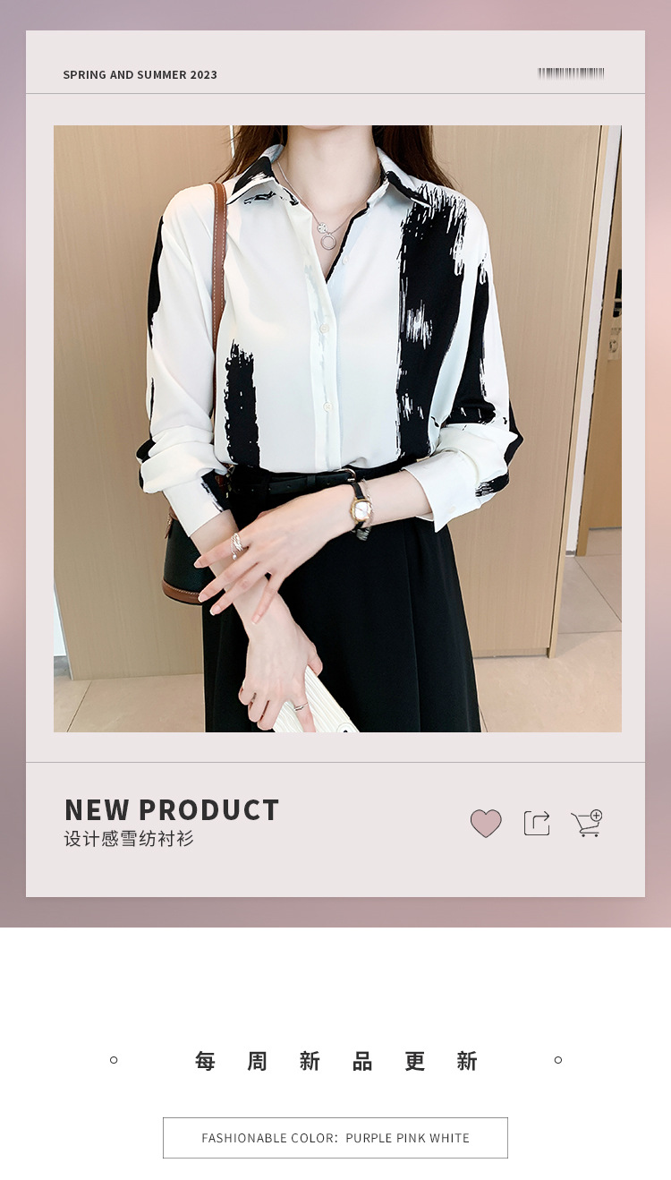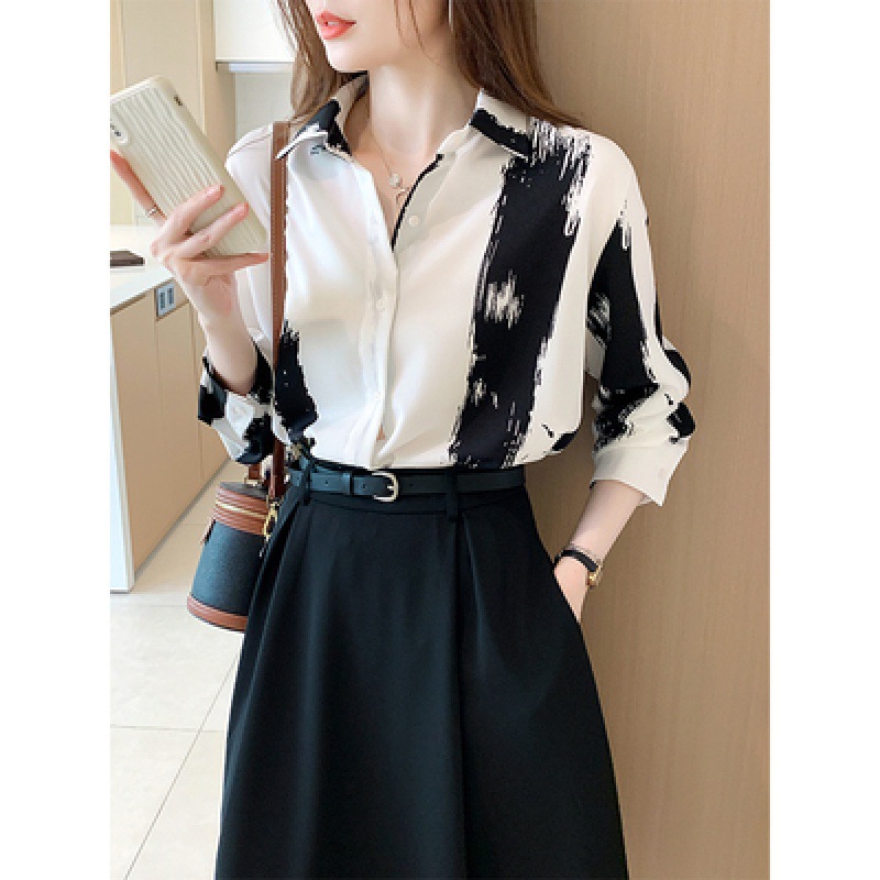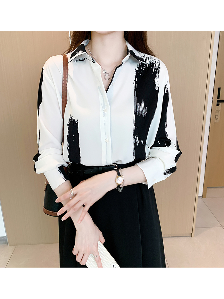 통근 쉬폰 셔츠 여성용 2023 초봄 새로운 루즈한 탑 디자인 틈새 긴팔 셔츠스토어 가기