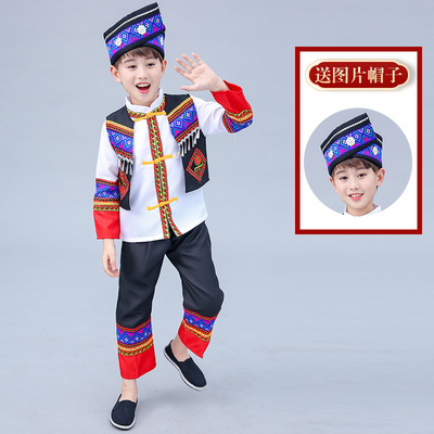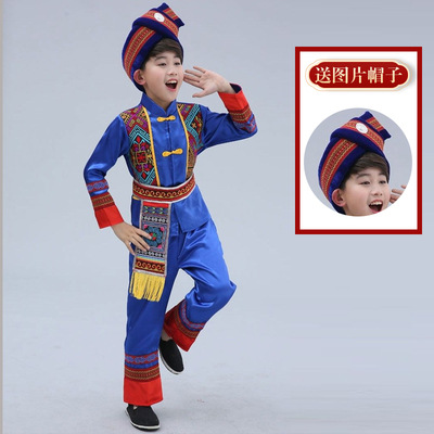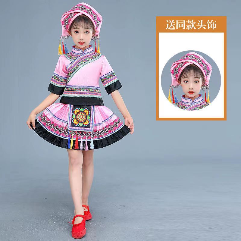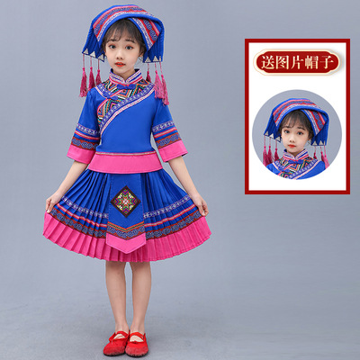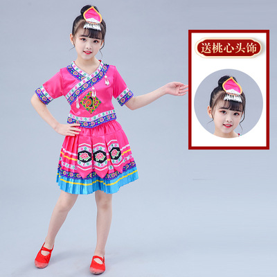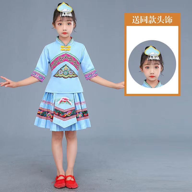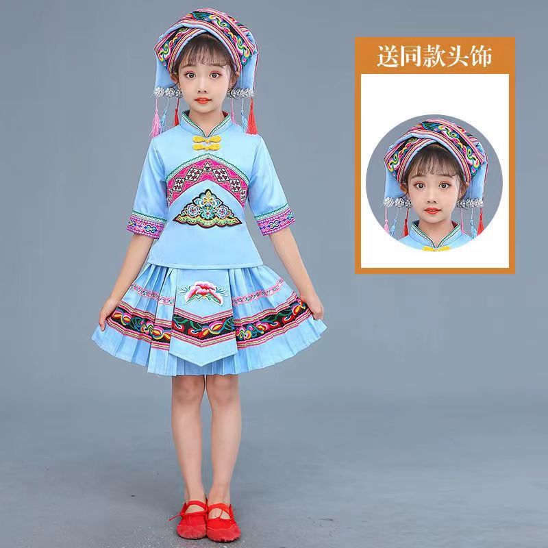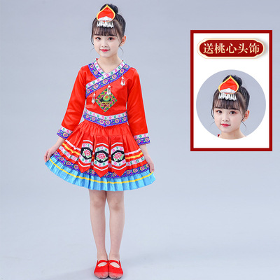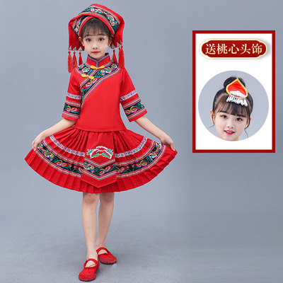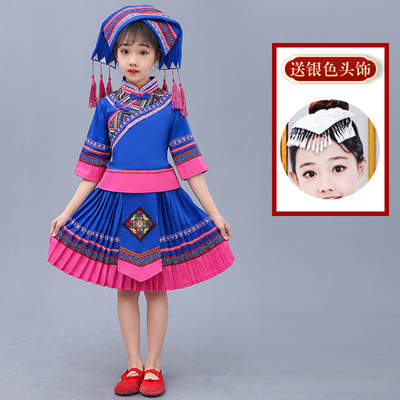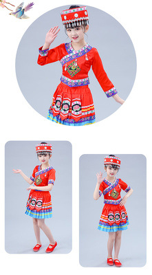 3 월 3 일 광시 좡족 의상 어린이 Miao Tujia 소년과 소녀 의상 소수 민족 공연 의상