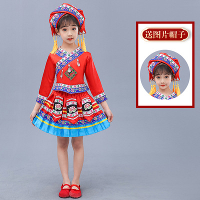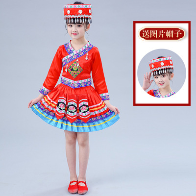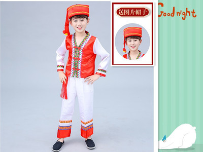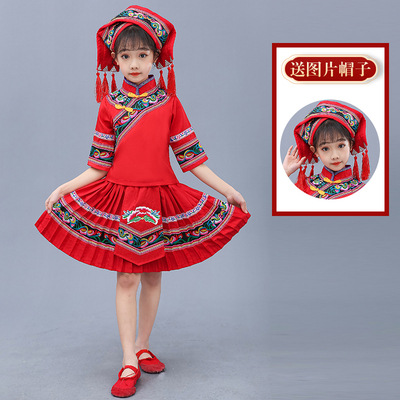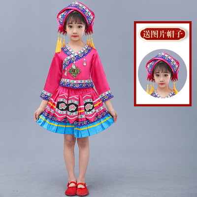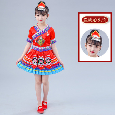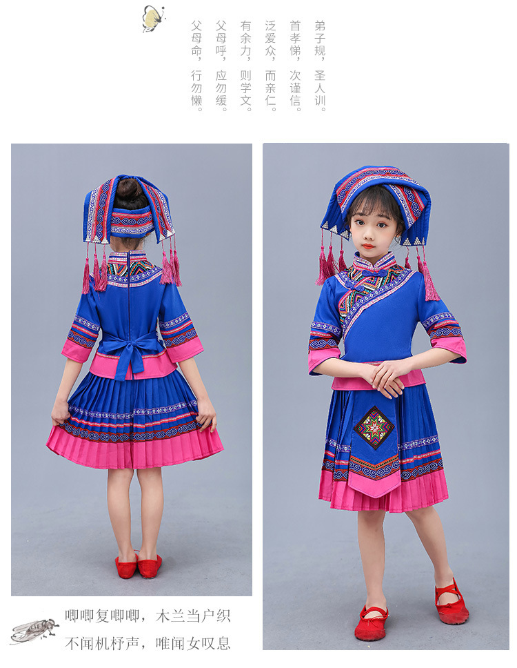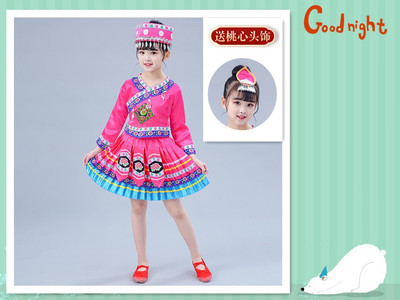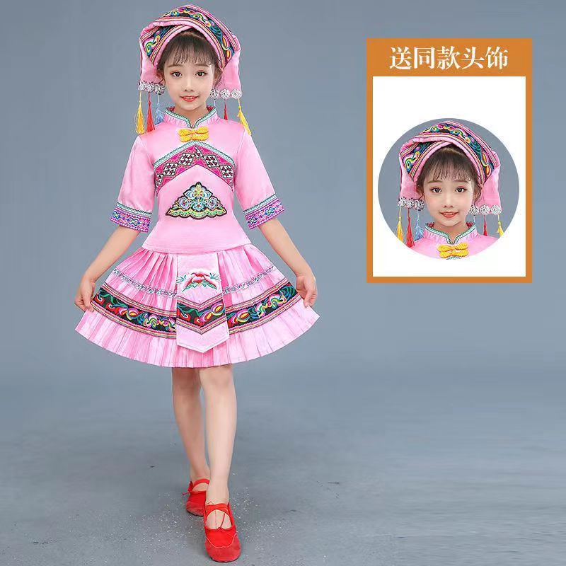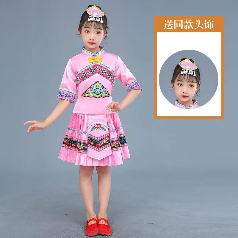 3 월 3 일 광시 좡족 의상 어린이 Miao Tujia 소년과 소녀 의상 소수 민족 공연 의상