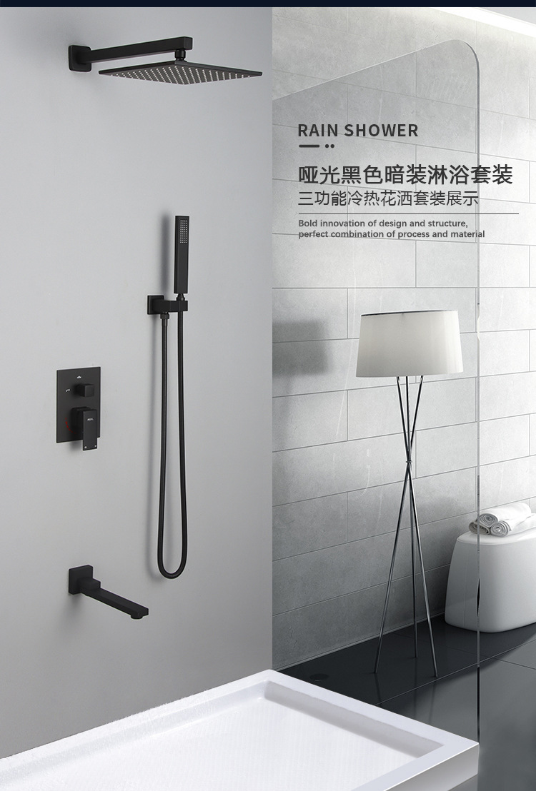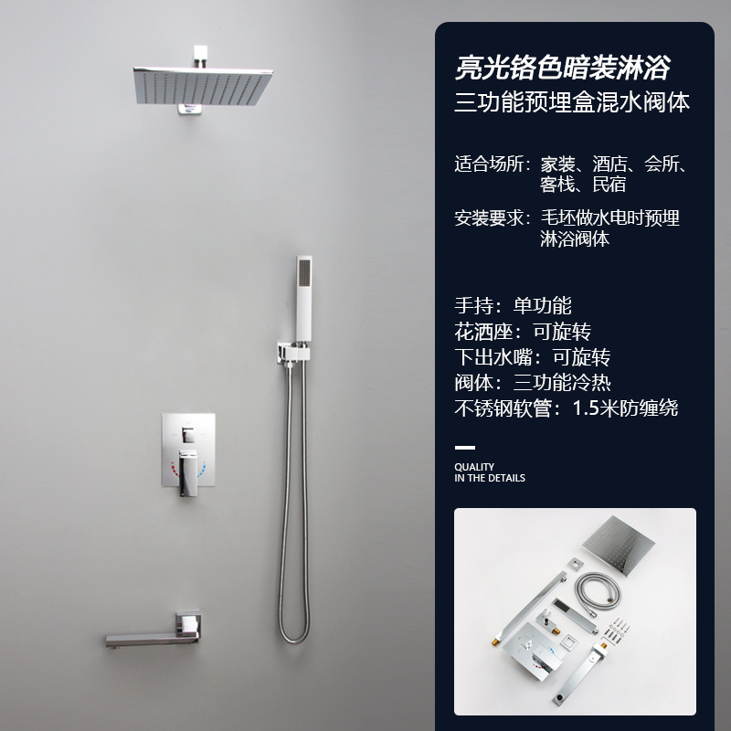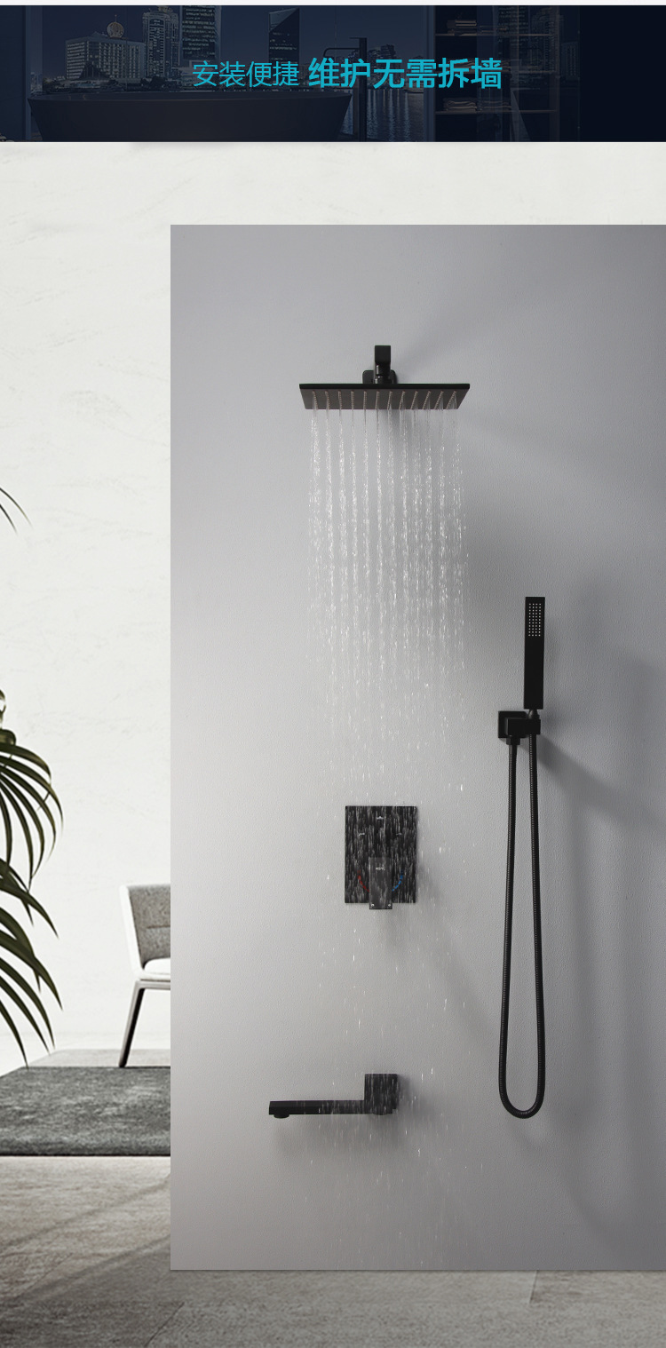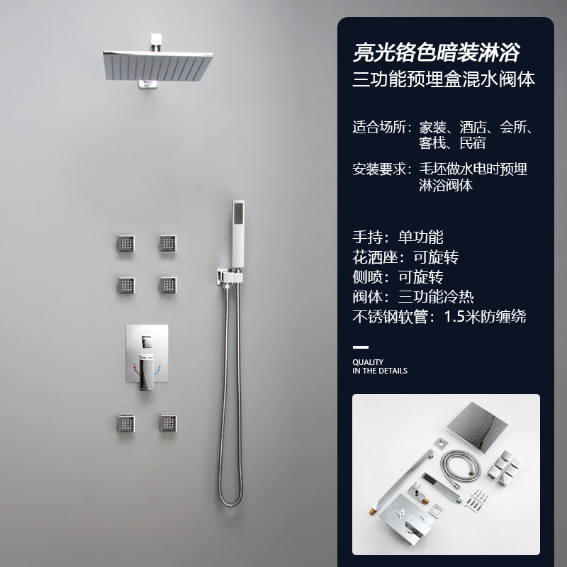 Shangyu 은폐 샤워 헤드 벽 내장 박스 믹싱 밸브 캐노피 천정 올 구리 샤워 세트 호텔 프로젝트