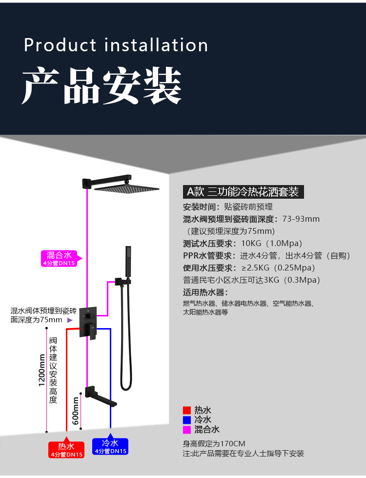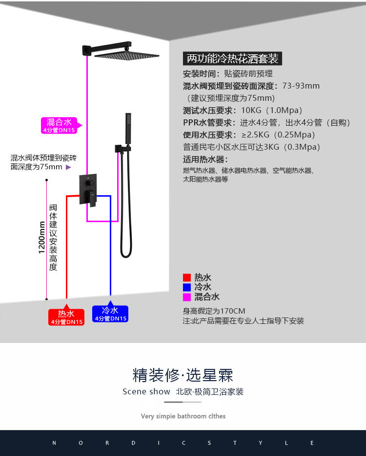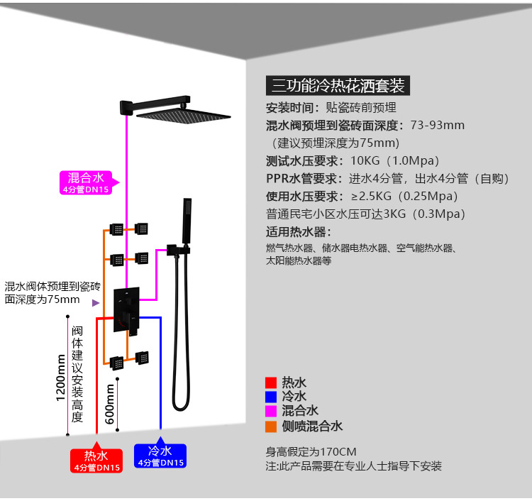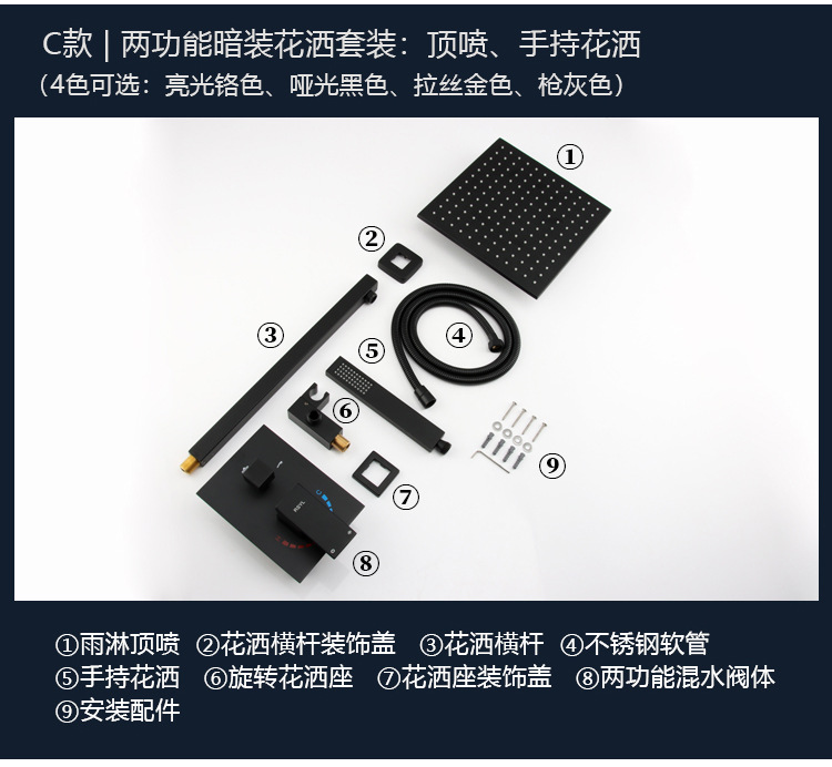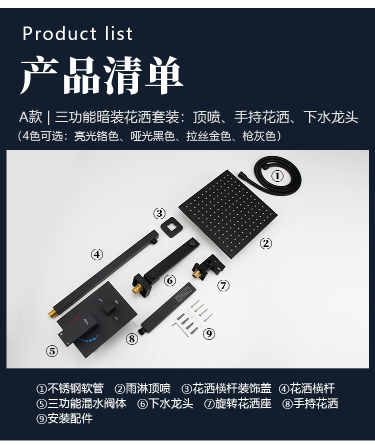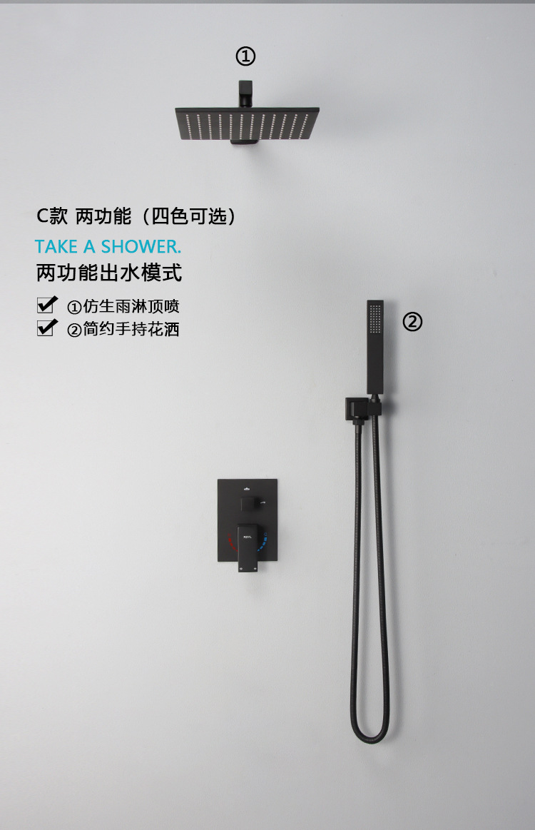 Shangyu 은폐 샤워 헤드 벽 내장 박스 믹싱 밸브 캐노피 천정 올 구리 샤워 세트 호텔 프로젝트