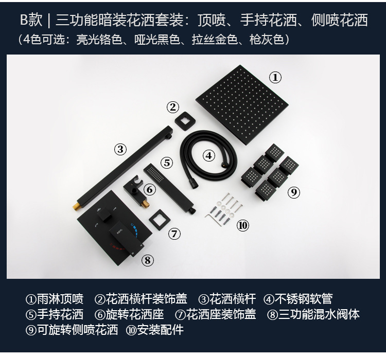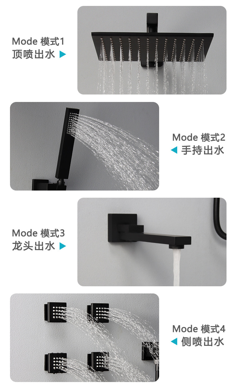 • 블랙 은폐 3 단 측면 스프레이 10 인치 상단 스프레이