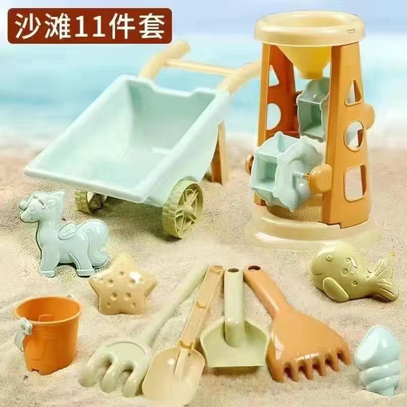 어린이 해변 장난감 세트 아기 놀이 물 모래 계수 나무 씨앗 모래 시계 대형 삽 해변 양동이 어린이 도구스토어 가기