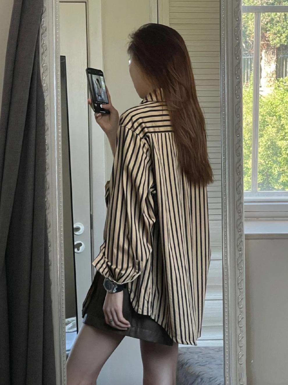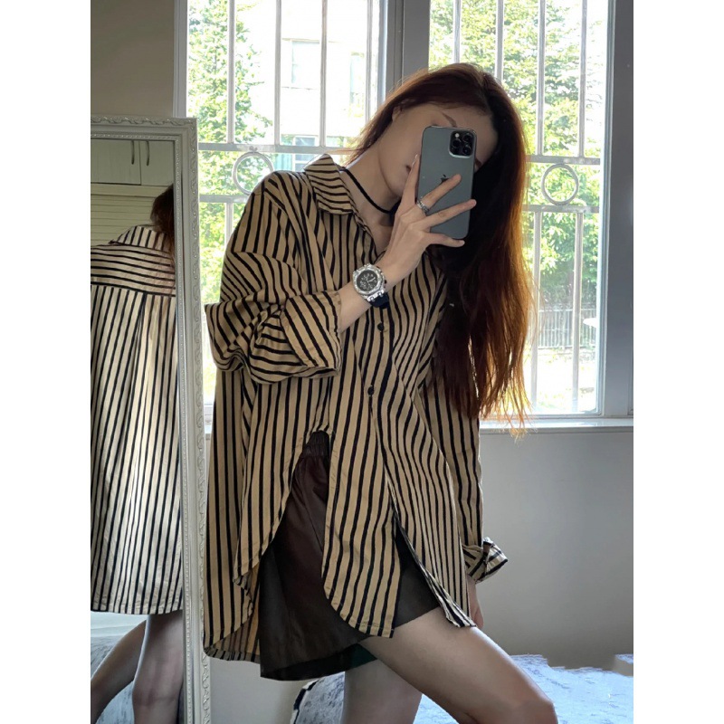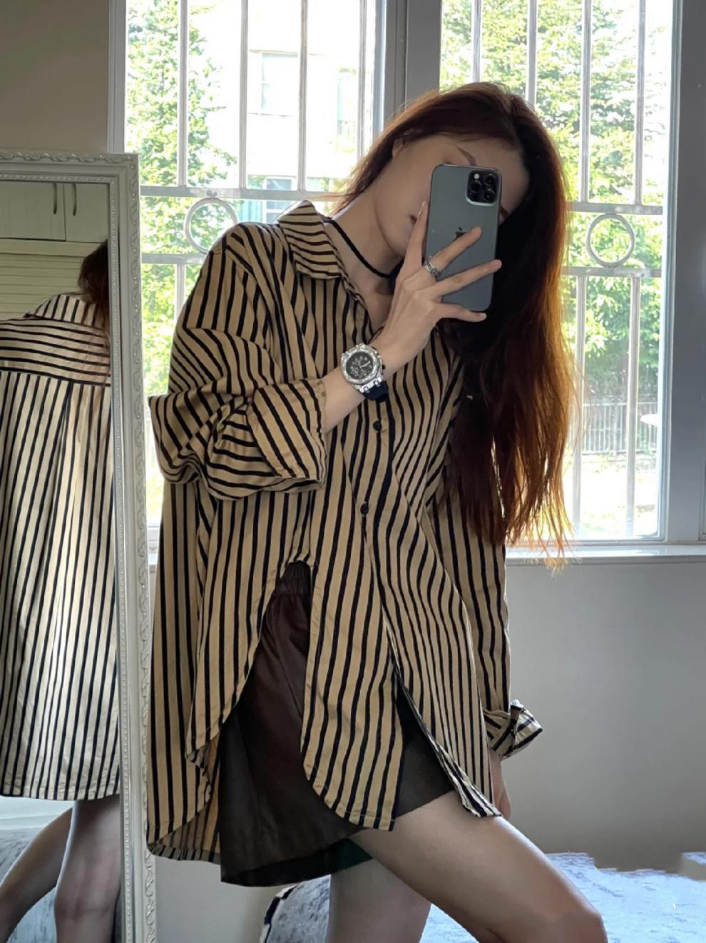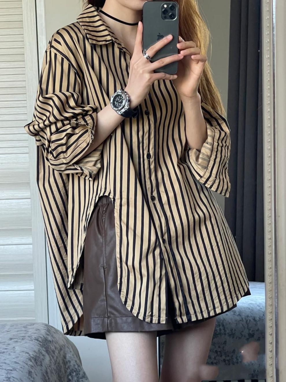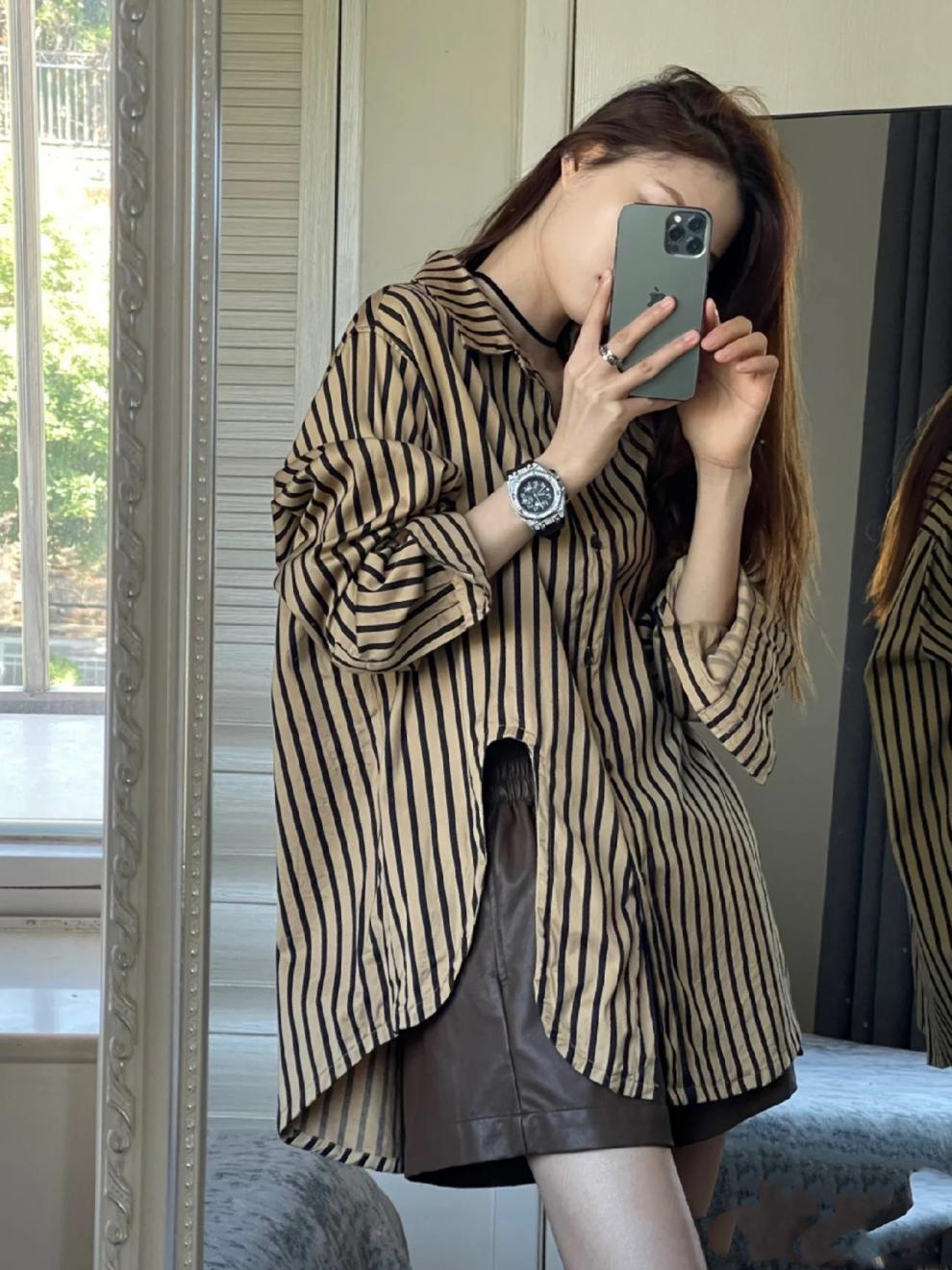 2023 새로운 이른 봄 느슨한 디자인 감각 틈새 셔츠 홍콩 맛 레트로 아메리칸 셔츠 여성용스토어 가기