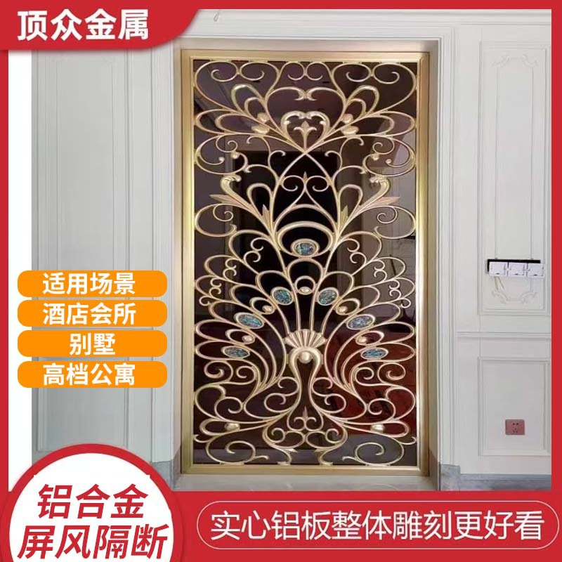 새로운 중국 스타일의 가벼운 고급 금속 호텔 복도 스크린 파티션 알루미늄 조각 모란 꽃 하이 엔드 스크린스토어 가기