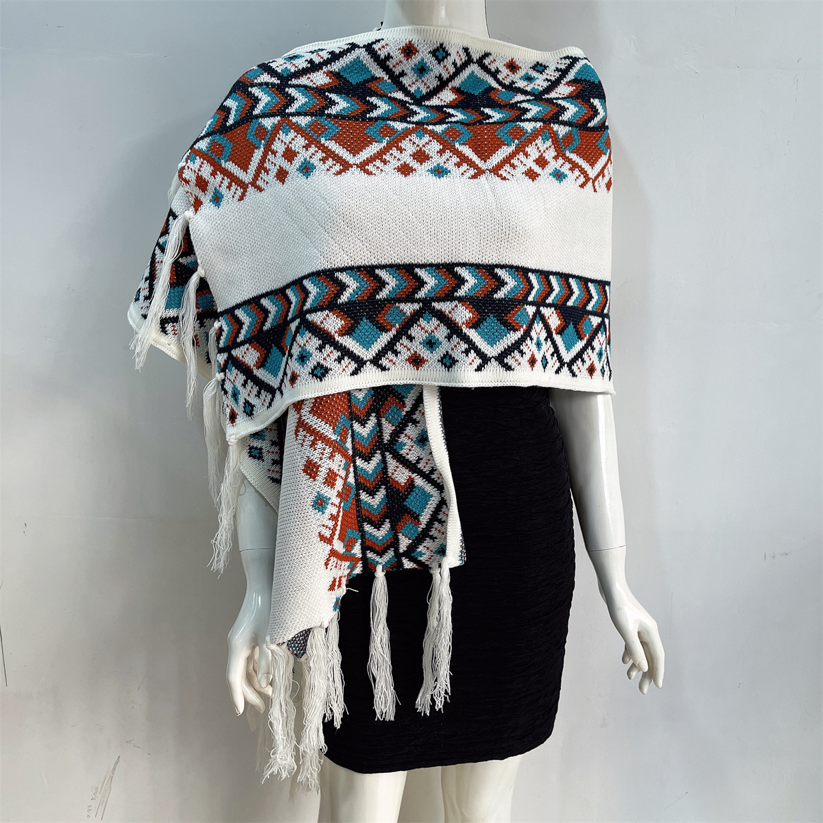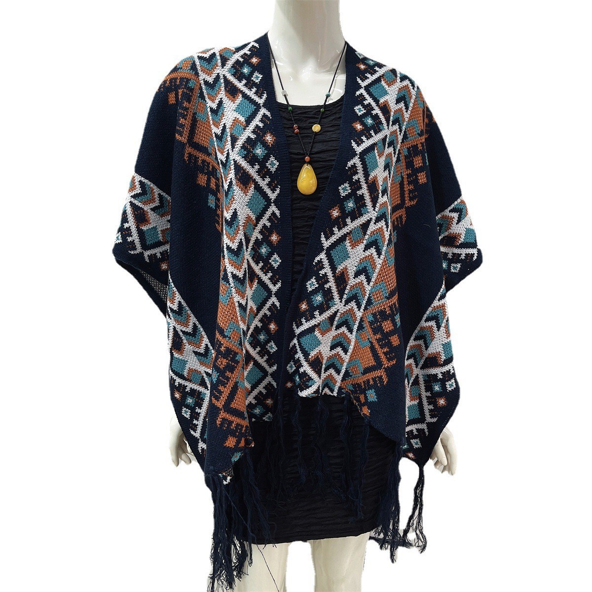 보헤미안 에스닉 스타일의 이중 사용 여성용 봄과 가을 두꺼운 따뜻한 롱 울 망토 판초 겨울 사진 숄