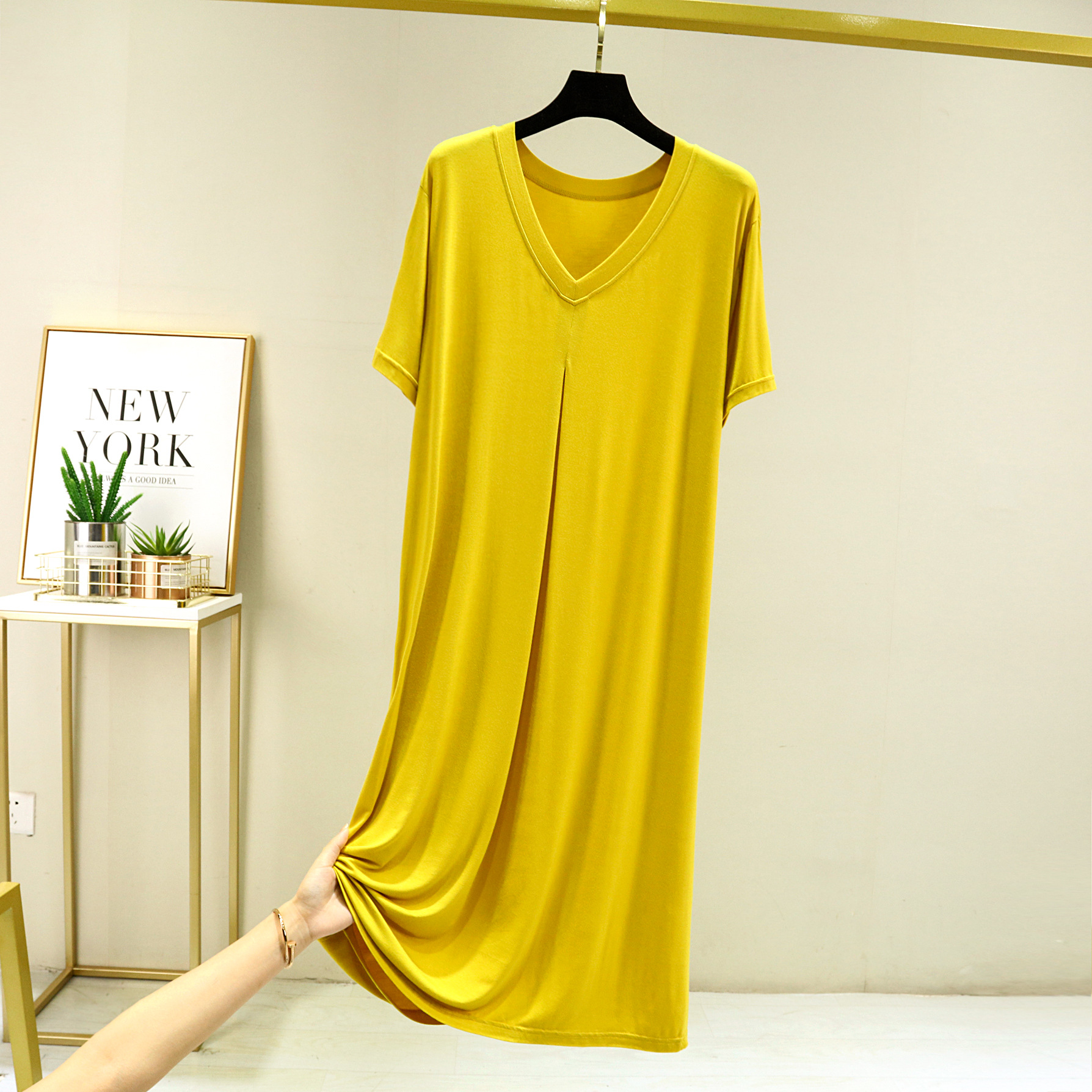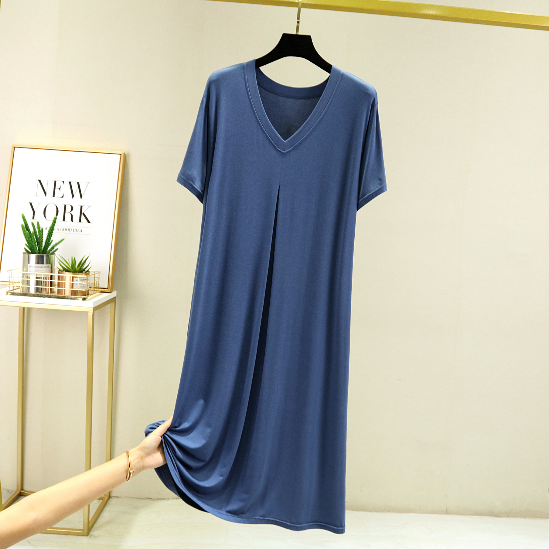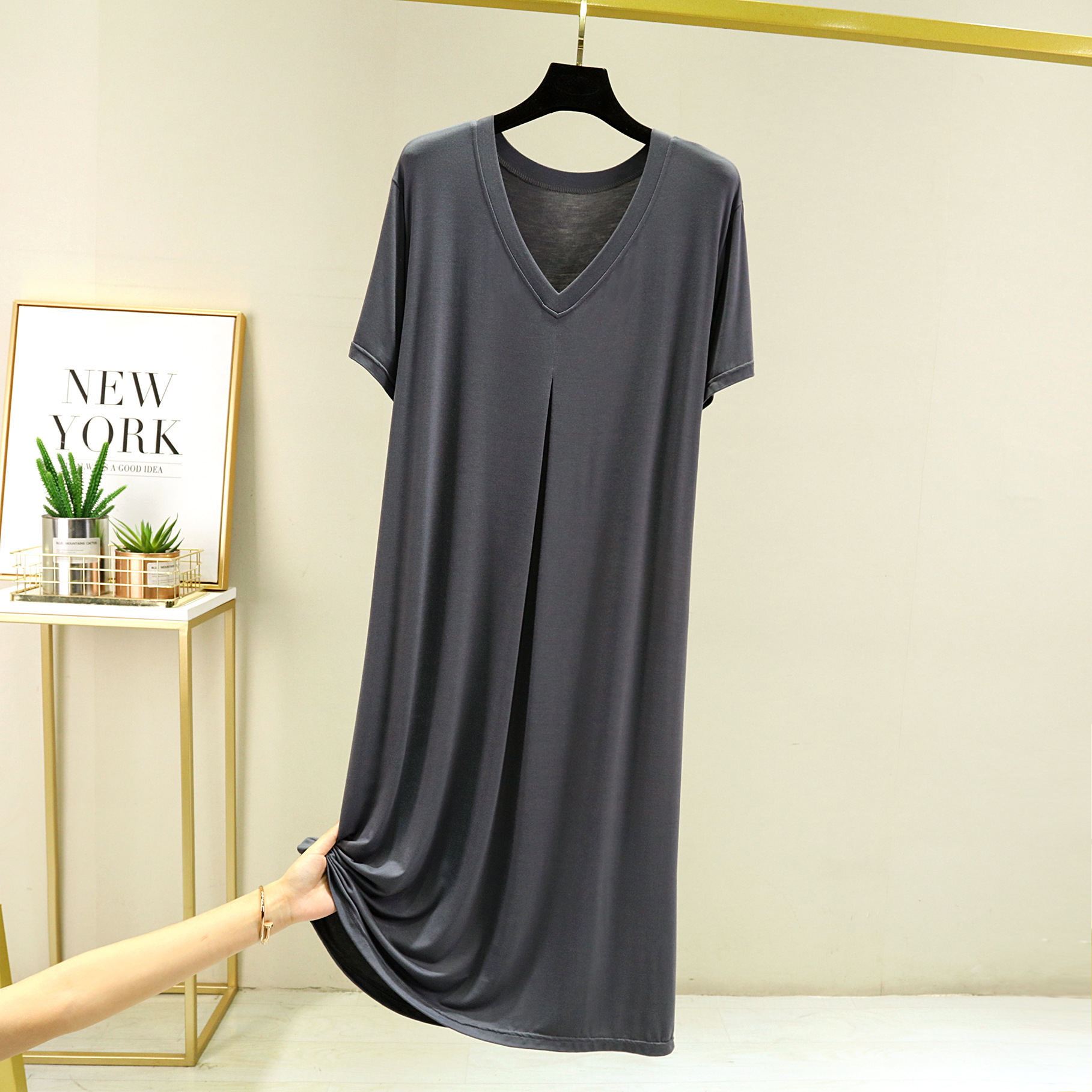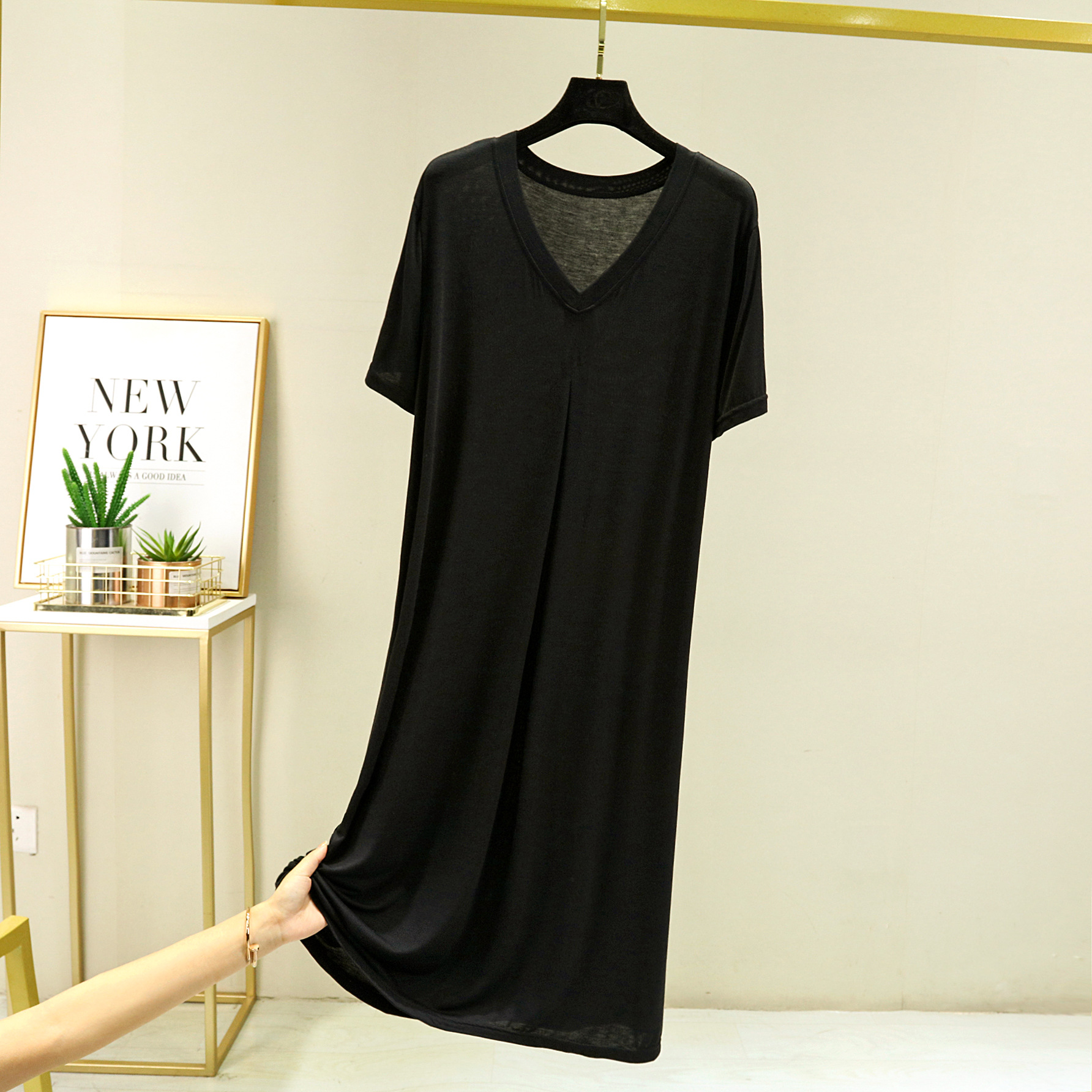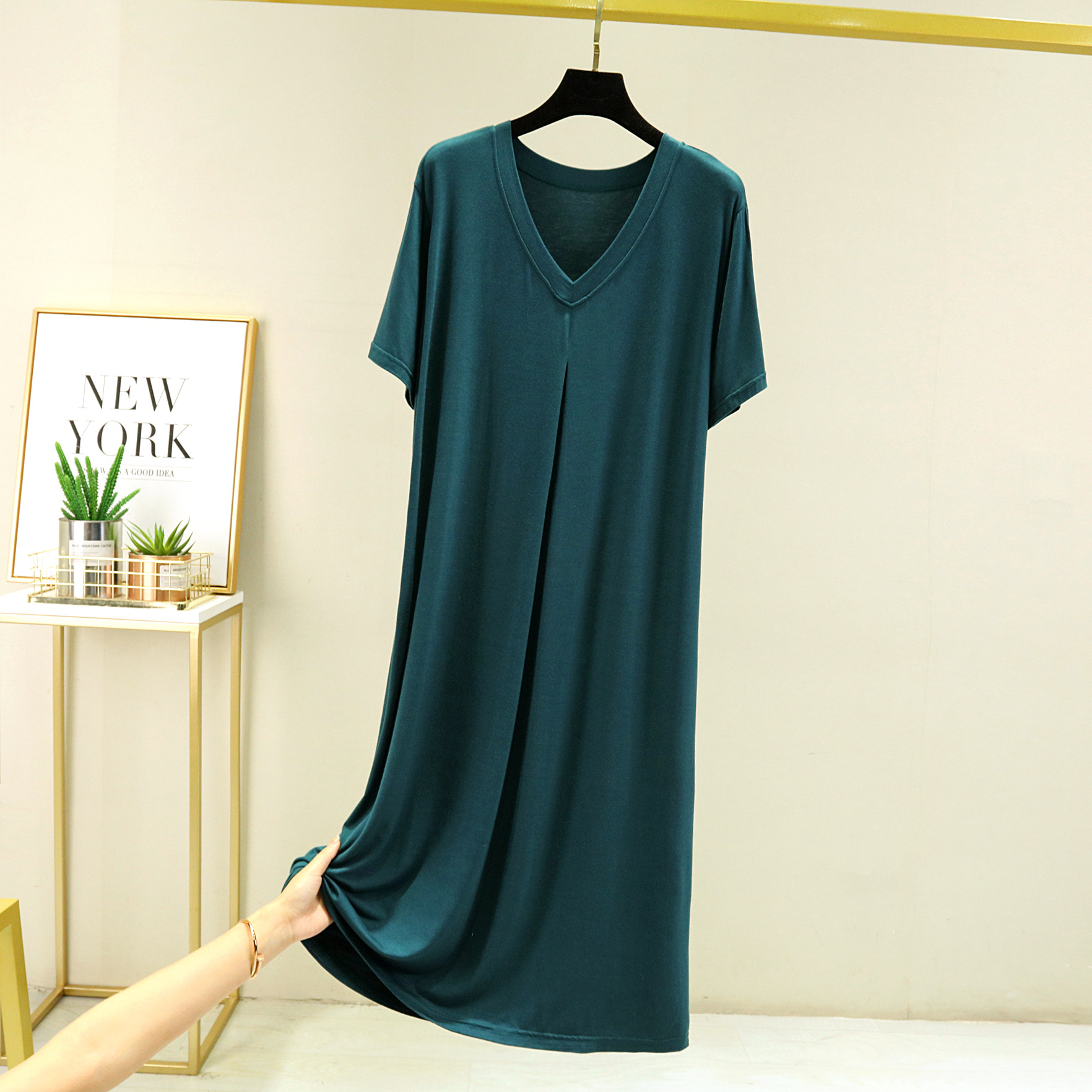 Modal Nightdress 여성용 여름 플러스 사이즈 느슨한 원피스 V-넥 중간 길이 A-라인 스커트 얇은 무릎 위 가정용 스커트