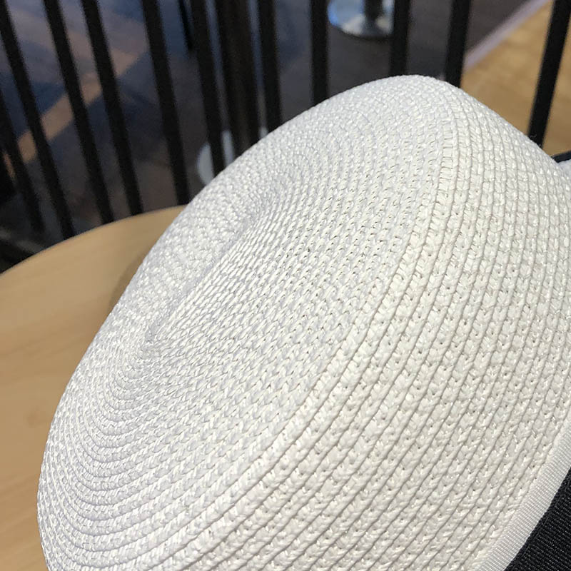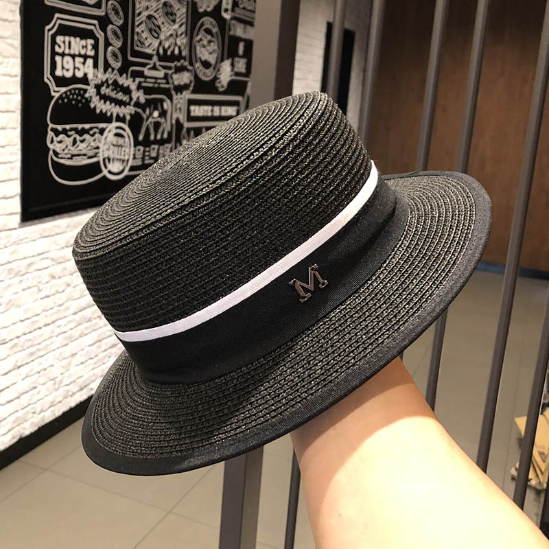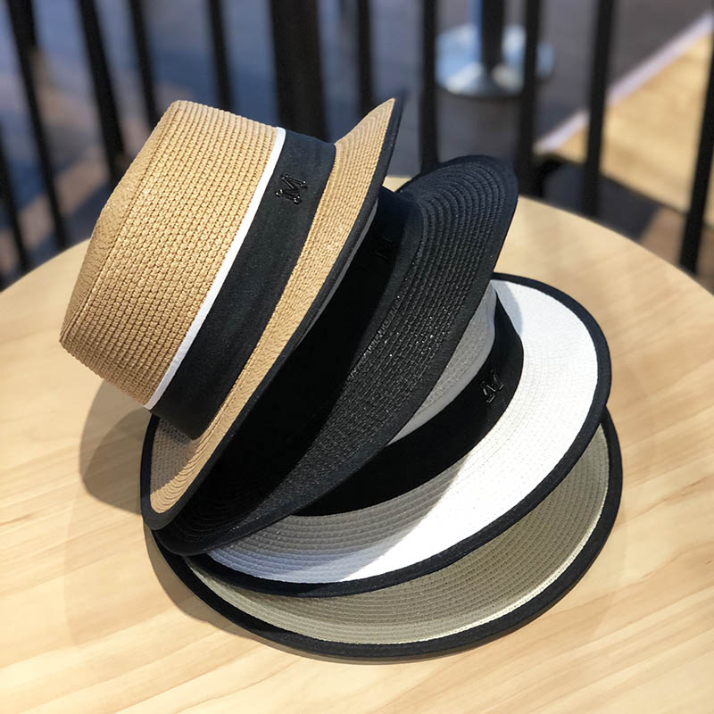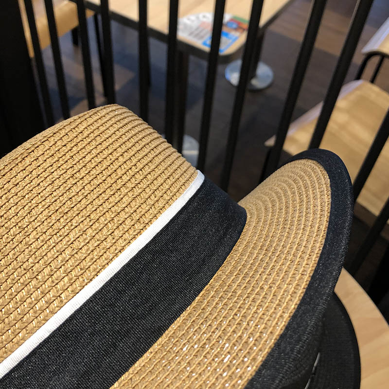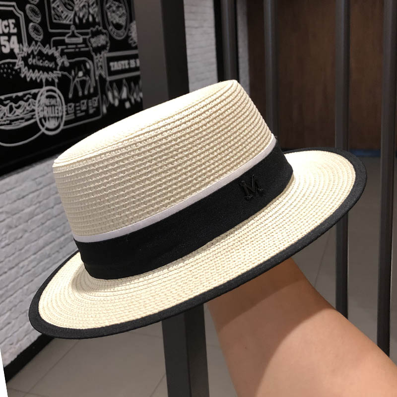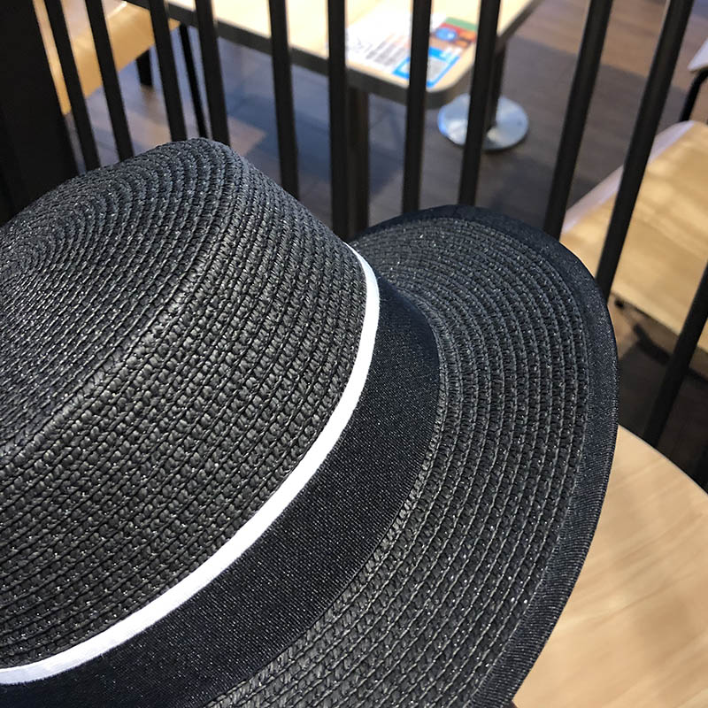 한국 플랫 탑 작은 챙 밀짚 모자 여자의 여름 차양 자외선 차단제 짚 짜기 멋진 모자 인터넷 연예인 여름 패션 영국 탑 모자스토어 가기