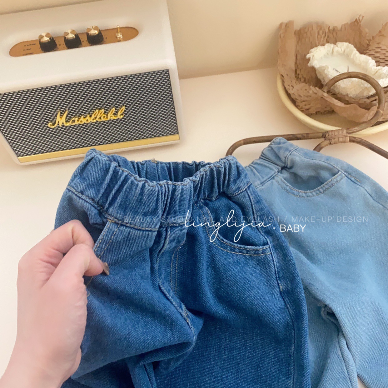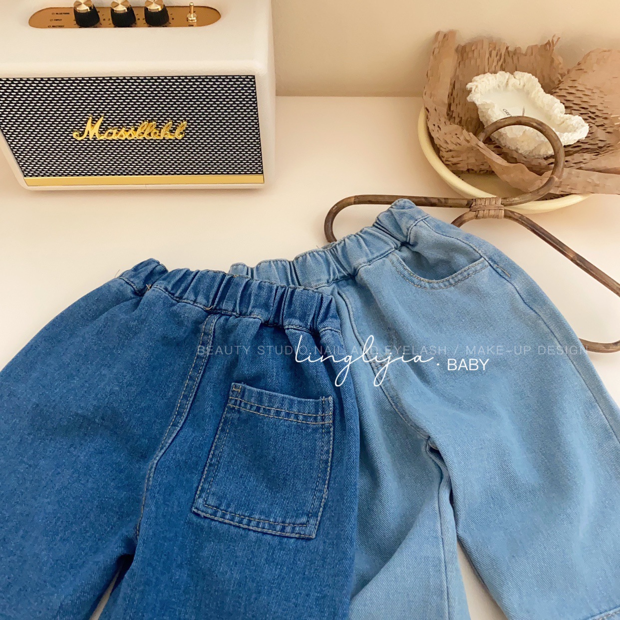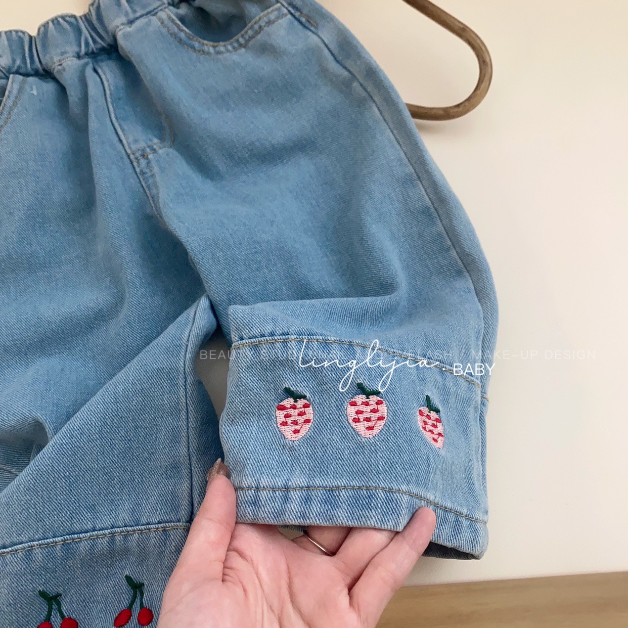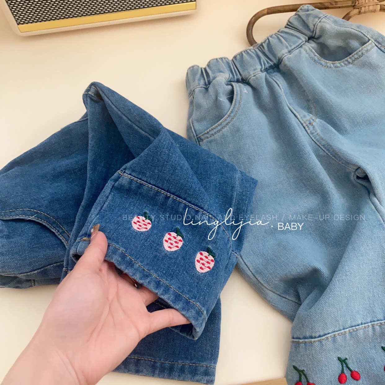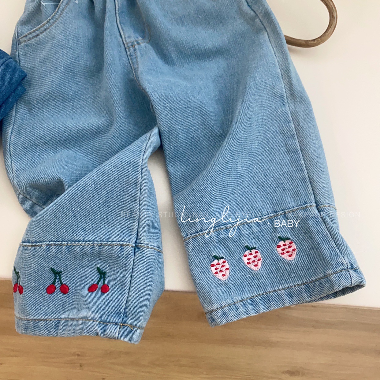 Little Salty Lemon 여아 캐주얼 청바지 1-7세 가을 베이비 한국 스타일 바지 스트레이트 체리 딸기 와이드 팬츠스토어 가기