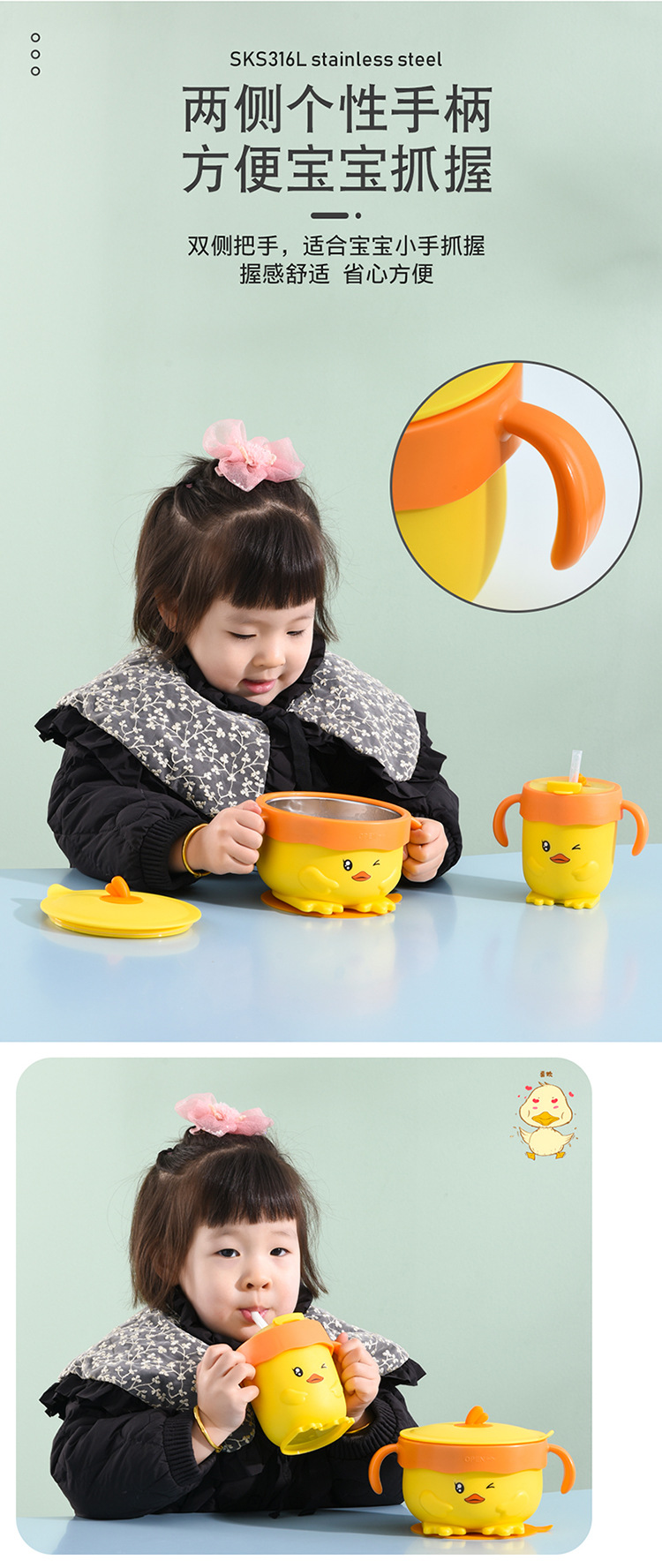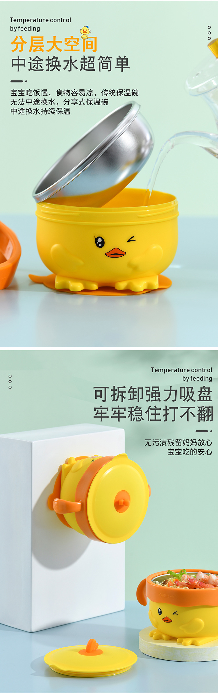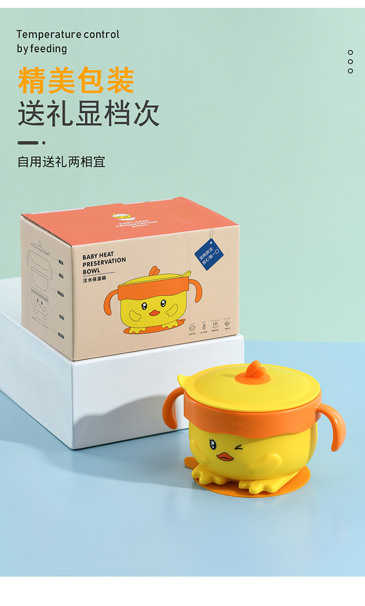 이유식 그릇 물 주입 단열 그릇 우유 컵 유아 낙하 방지 화상 흡입 그릇 흡입 컵 어린이 식기