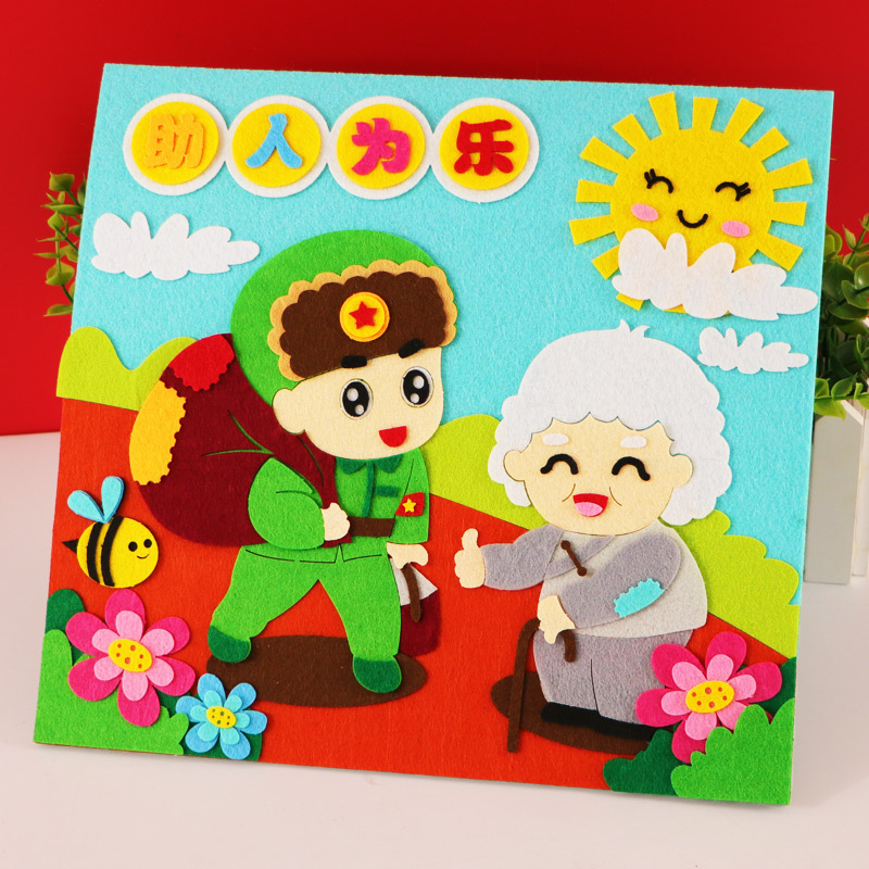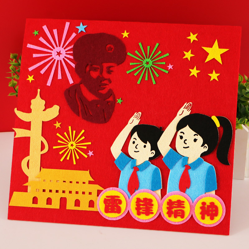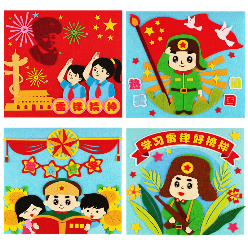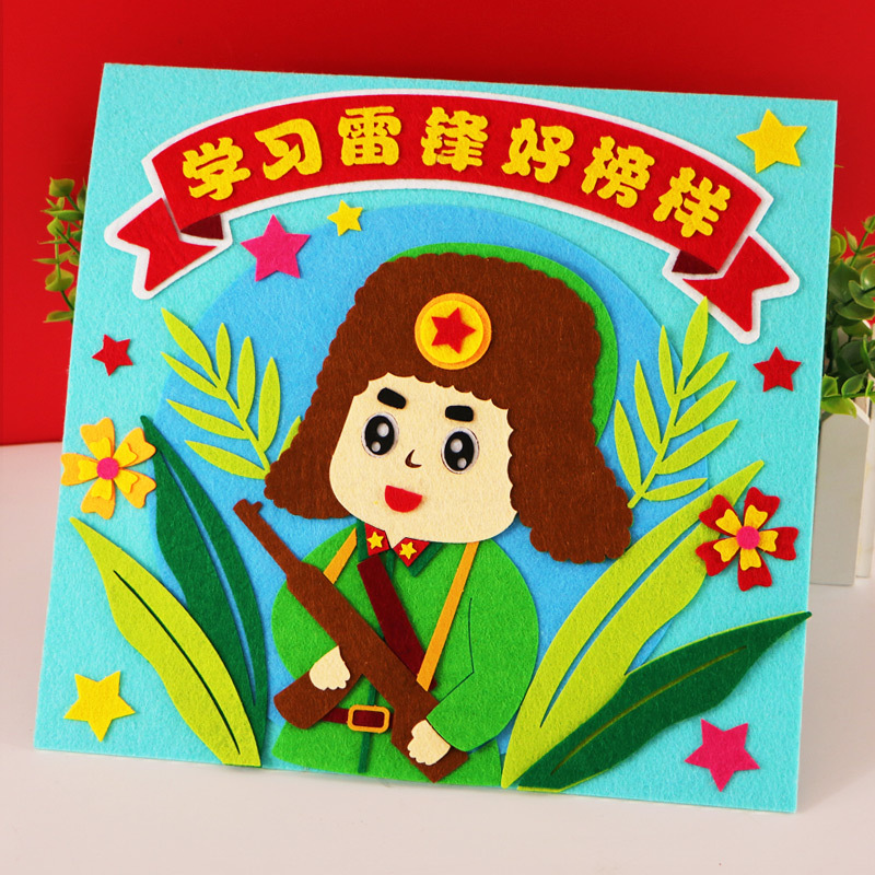 레이펑 수제 DIY 붙여넣기 제작 재료 패키지 어린이용 부직포 입체 스티커 그림 유치원에서 레이펑 정신을 배우기스토어 가기