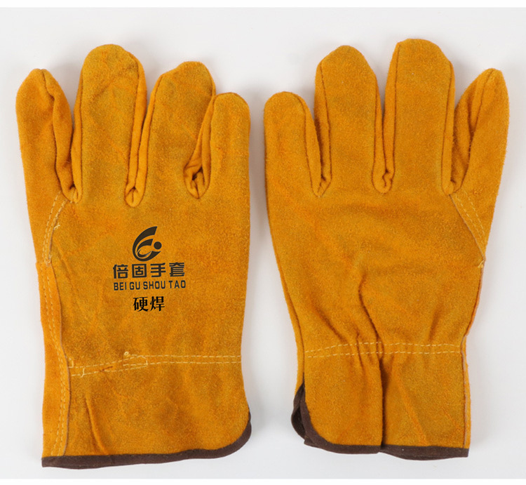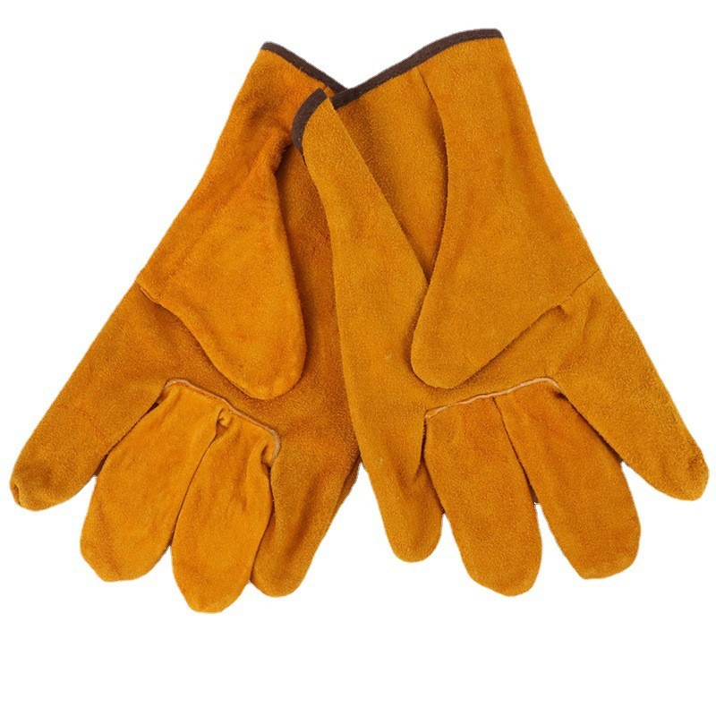 짧은 길이의 이중층 소가죽 미끄럼 방지 내마모성 용접 절연 장갑 노란색 전기 용접용 풀 가죽 운전사 보호 장갑