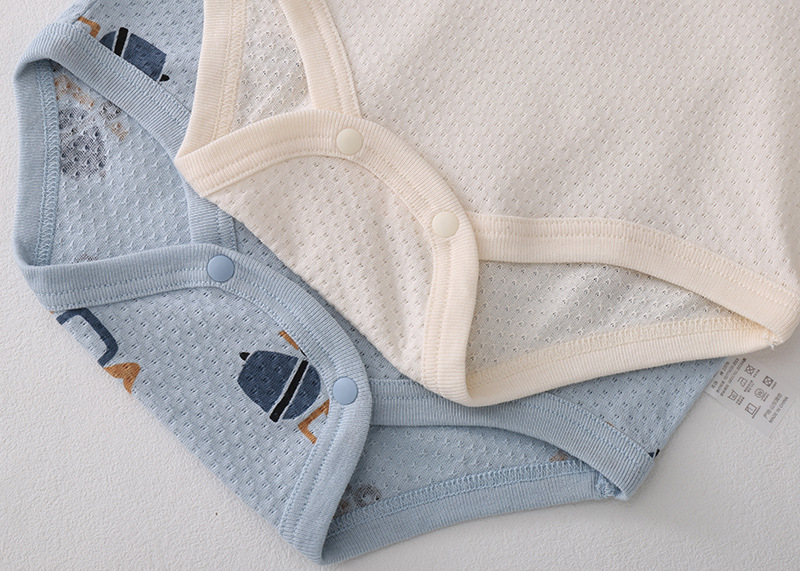 재고 여름 얇은 반팔 하퍼 가방 방귀 옷 아기 소년 순면 클래스 아기 원피스 옷 삼각형 방귀