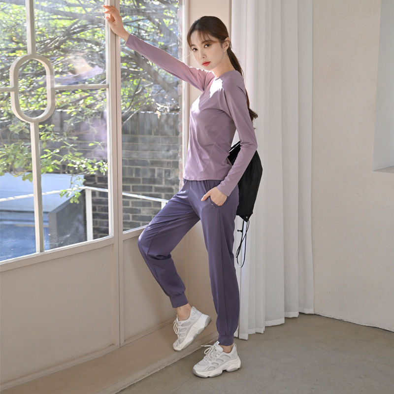 요가 의류 스포츠 여성의 긴 소매 투피스 전문 러닝 패션 새로운 기질 고급 피트니스 의류 세트 도매스토어 가기