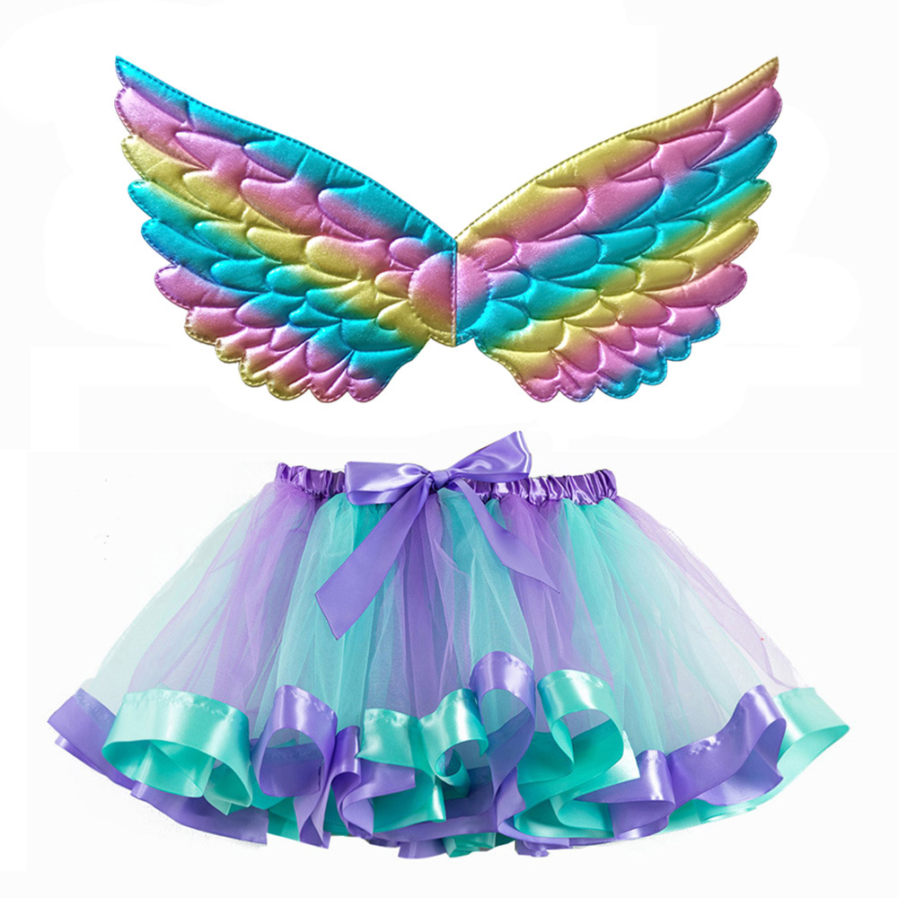 유럽과 미국의 아동복 무지개 치마 보내기 날개 투투 치마 소녀 메쉬 치마 성능 소녀 치마 머리카락의 세대