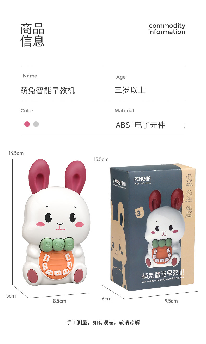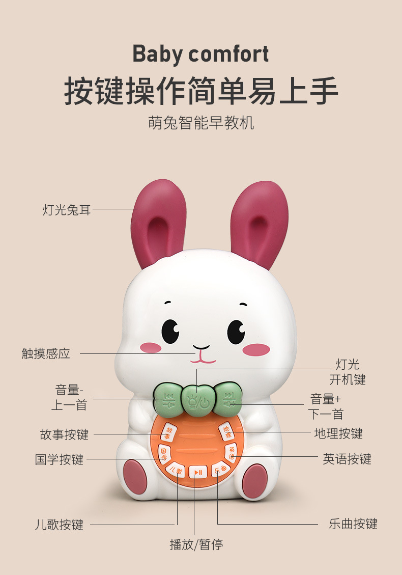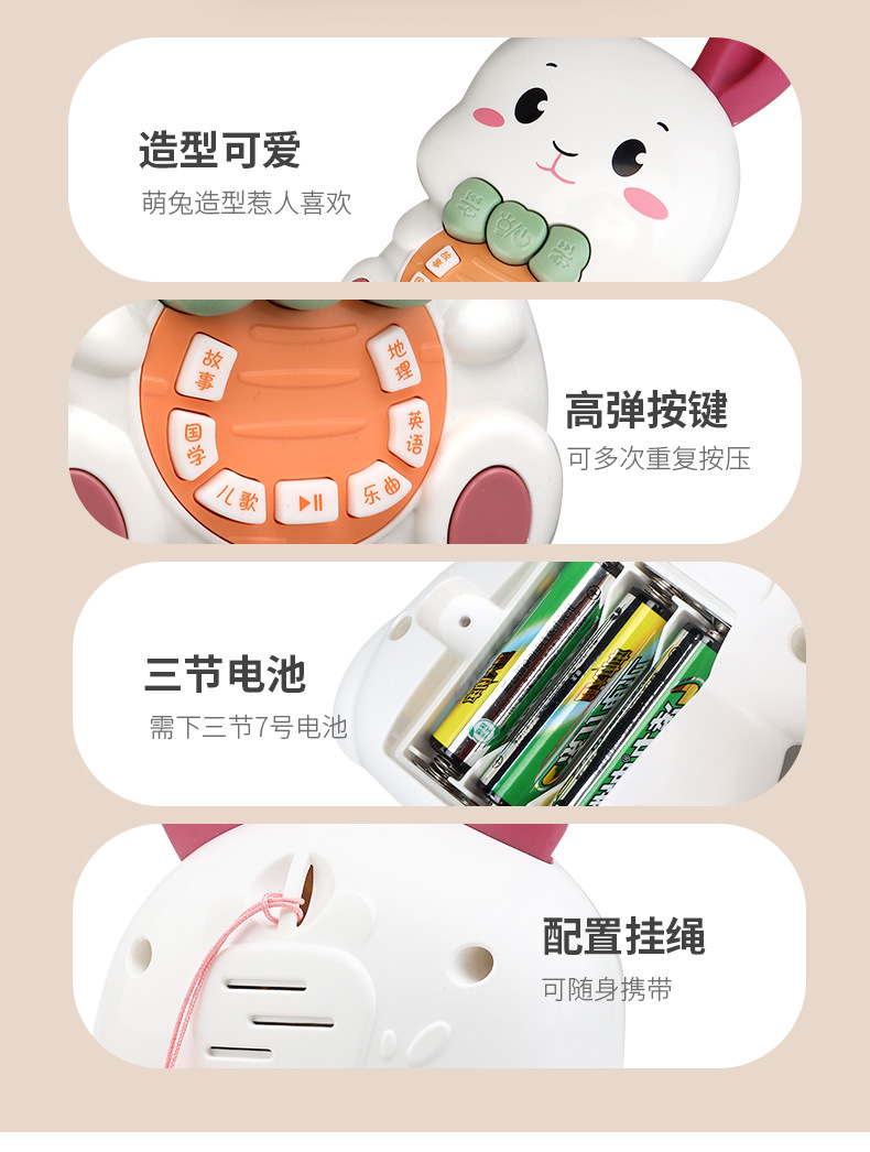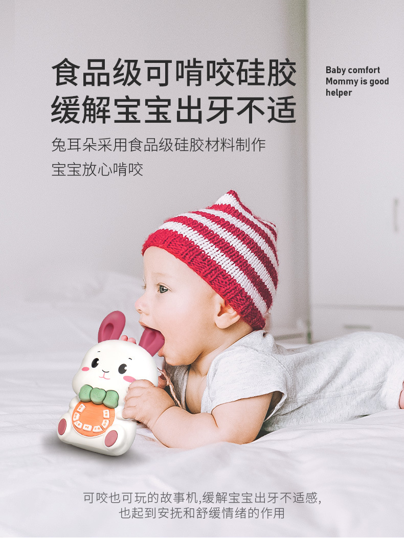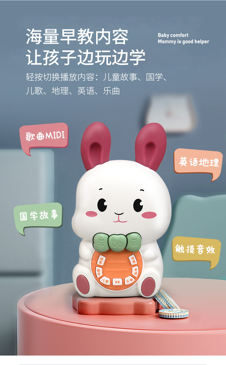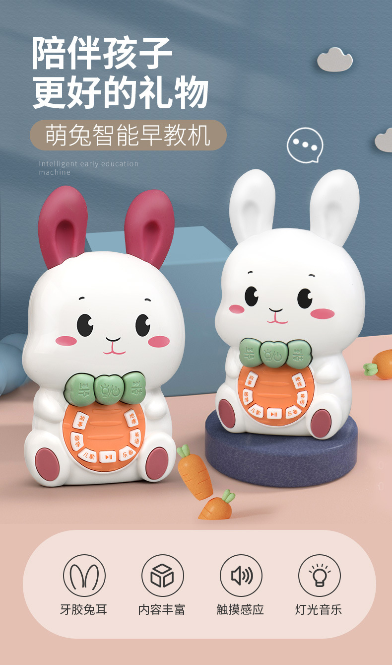어린이의 사랑스러운 토끼 조기 교육 이야기 기계 가벼운 음악 키는 낙하 방지 아기 아기 어린이 교육 장난감을 만질 수 있습니다스토어 가기