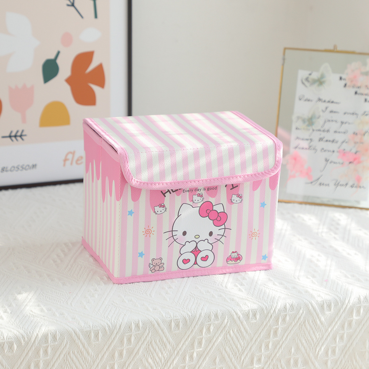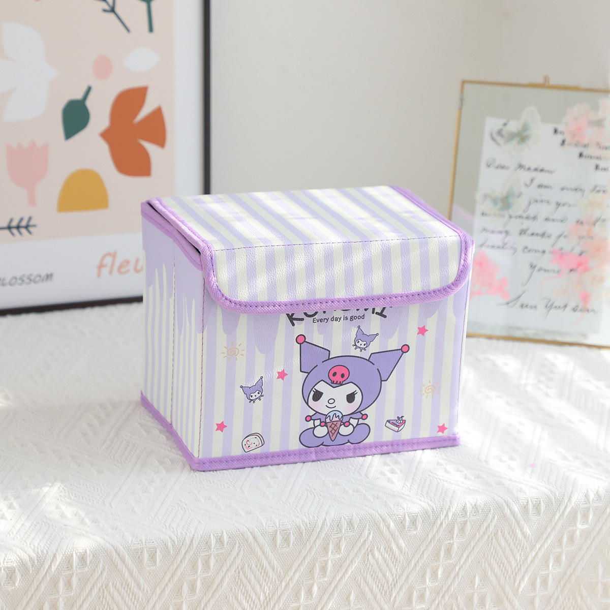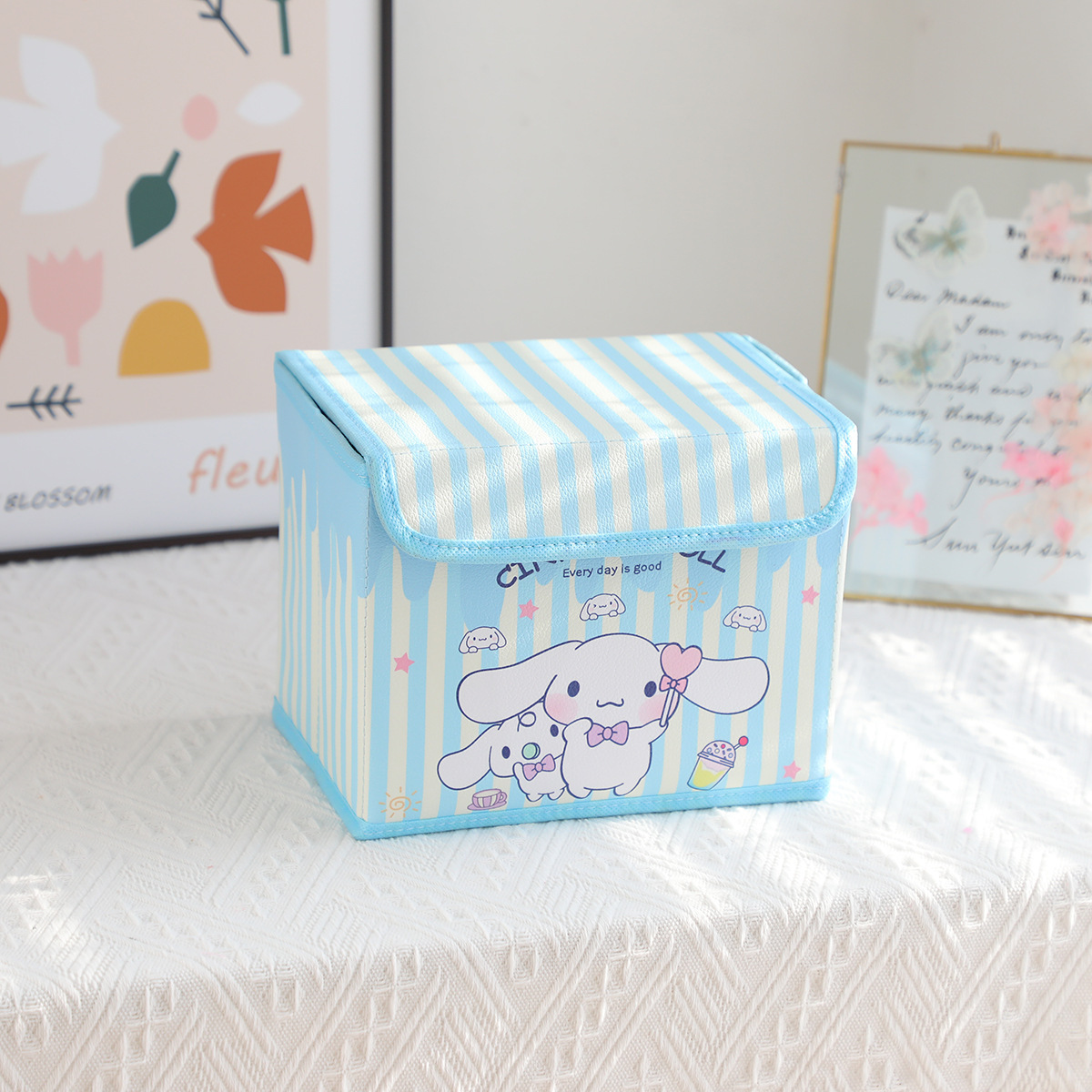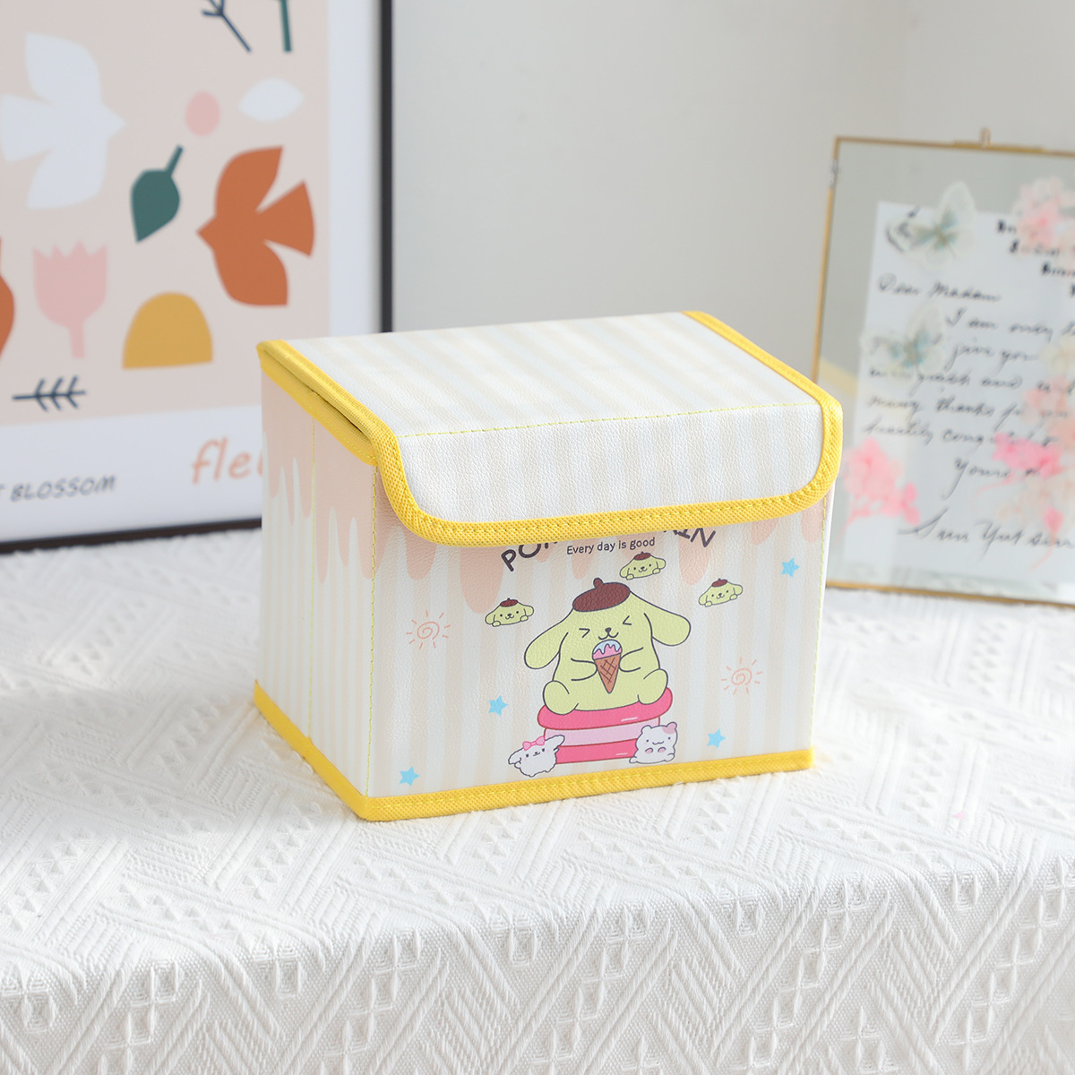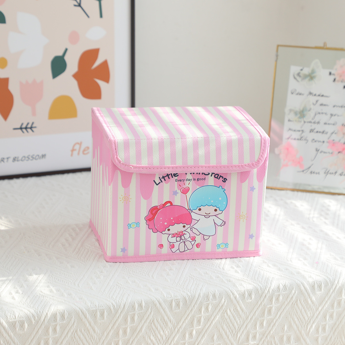 만화 PU 세로 스트립 시리즈 플립탑 데스크탑 소형 수납함 사무실 침실 옷장 화장대 접이식스토어 가기
