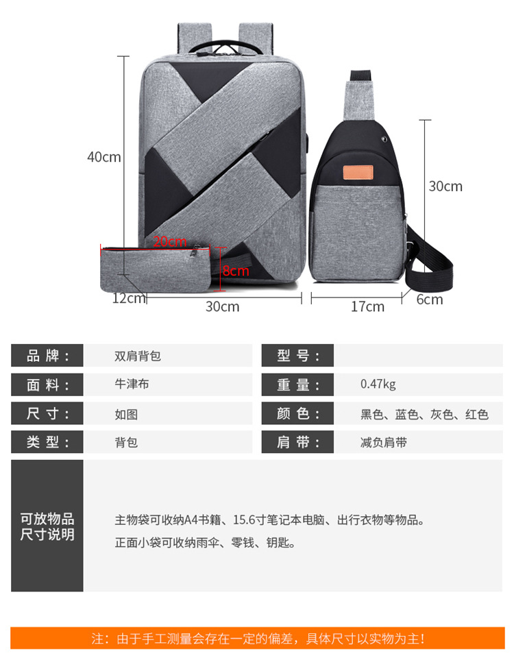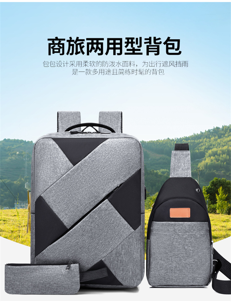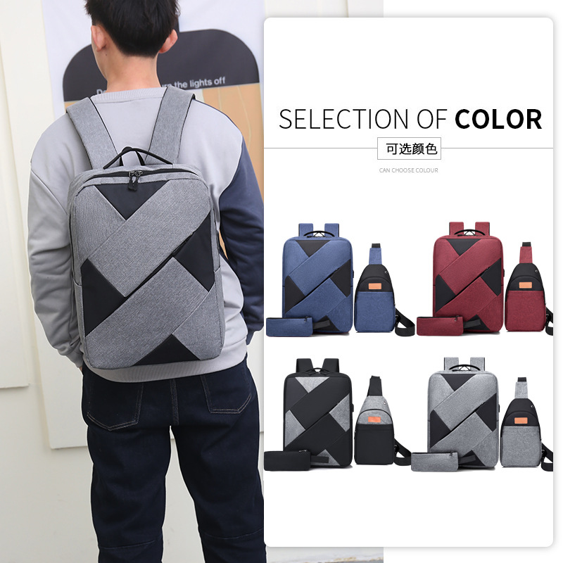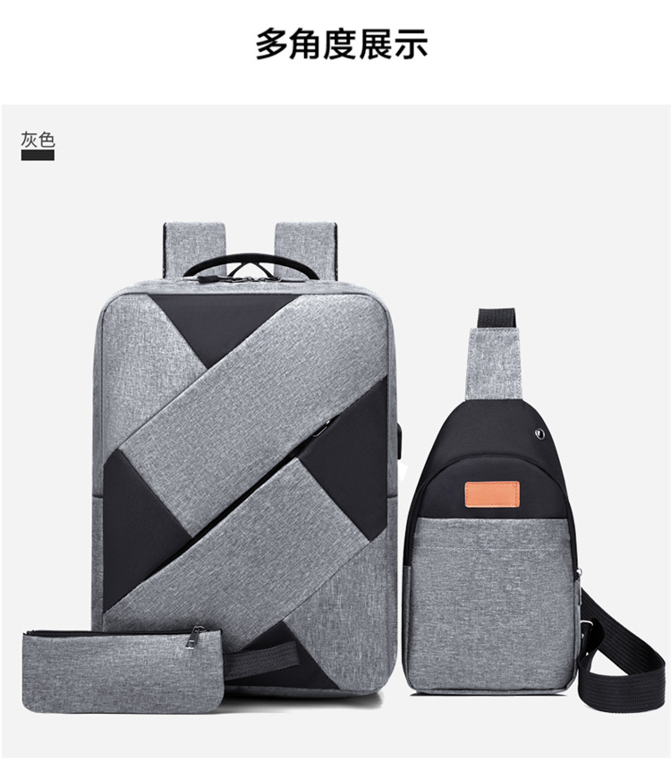 크로스 보더 도매 3 피스 백팩 뉴 심플 레저 USB 충전식 백팩 비즈니스 통근 컴퓨터 가방스토어 가기