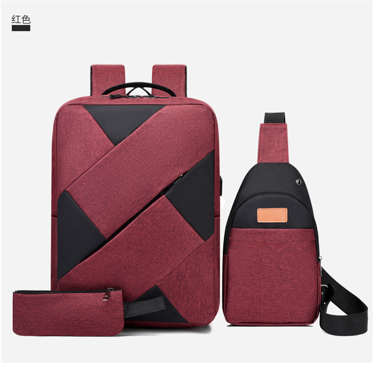 크로스 보더 도매 3 피스 백팩 뉴 심플 레저 USB 충전식 백팩 비즈니스 통근 컴퓨터 가방
