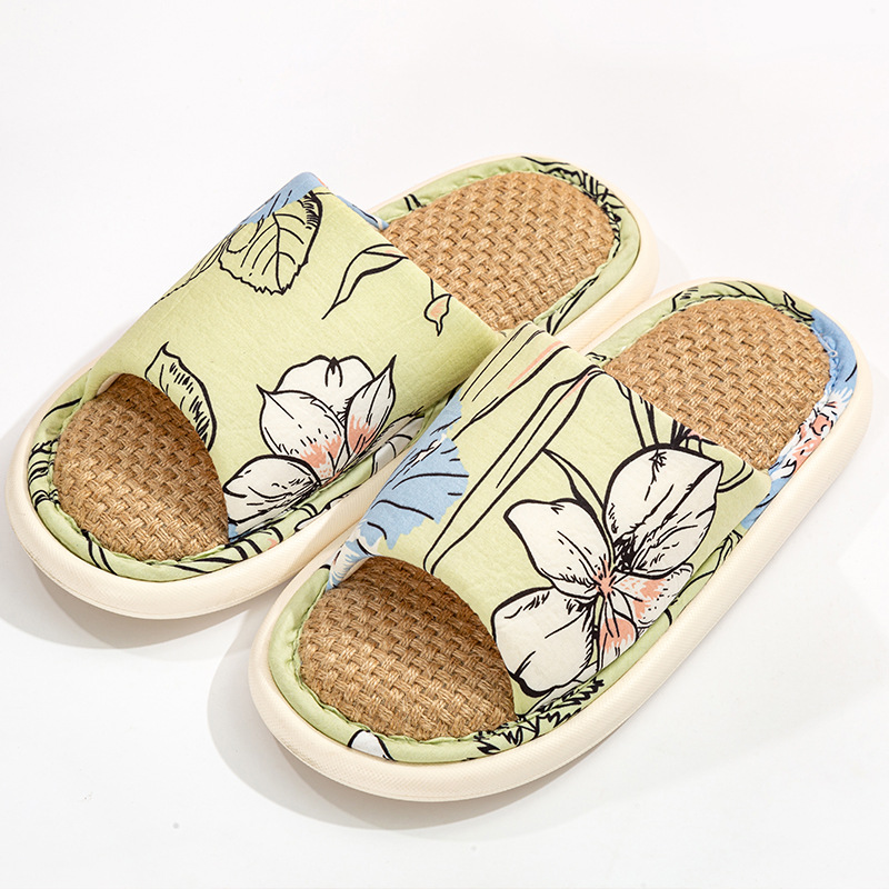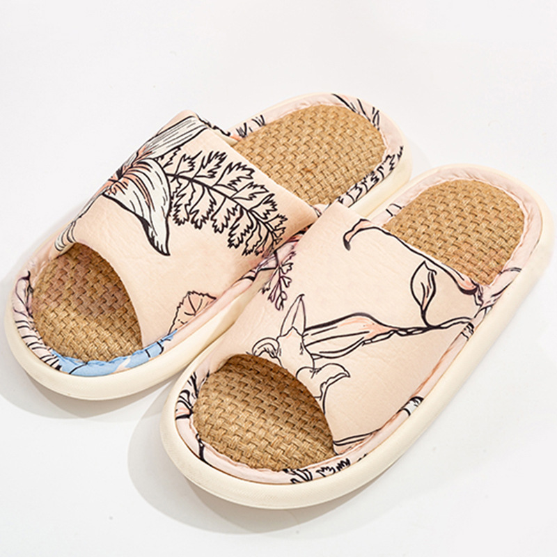 【특가】부드러운 홈웨어 무소음 린넨 슬리퍼 실내 미끄럼 방지 부드러운 밑창 사계절 여성용 바닥 슬리퍼스토어 가기