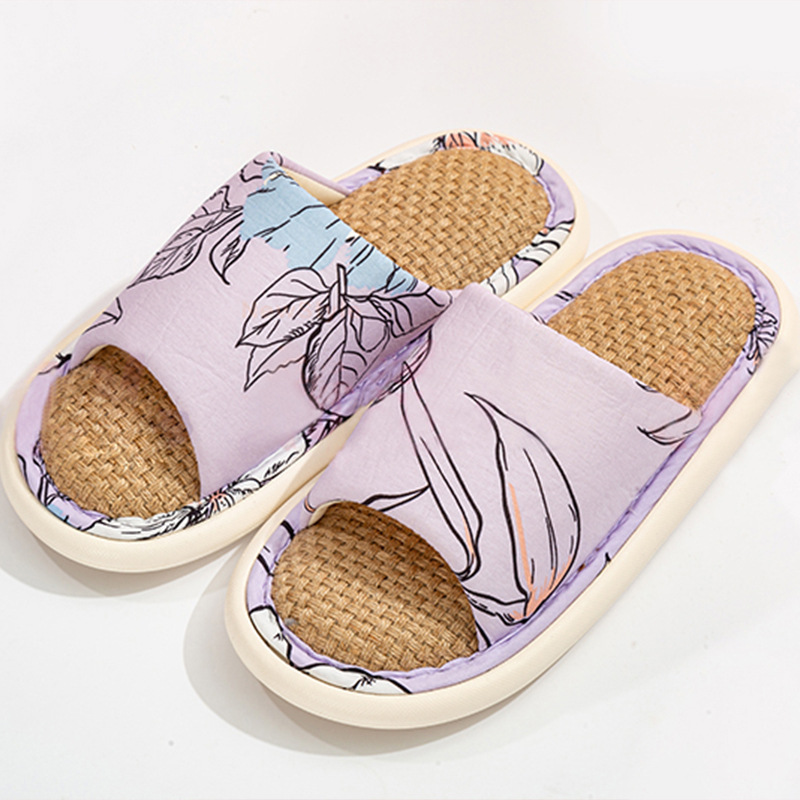 【특가】부드러운 홈웨어 무소음 린넨 슬리퍼 실내 미끄럼 방지 부드러운 밑창 사계절 여성용 바닥 슬리퍼