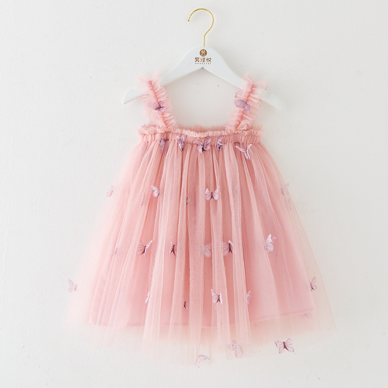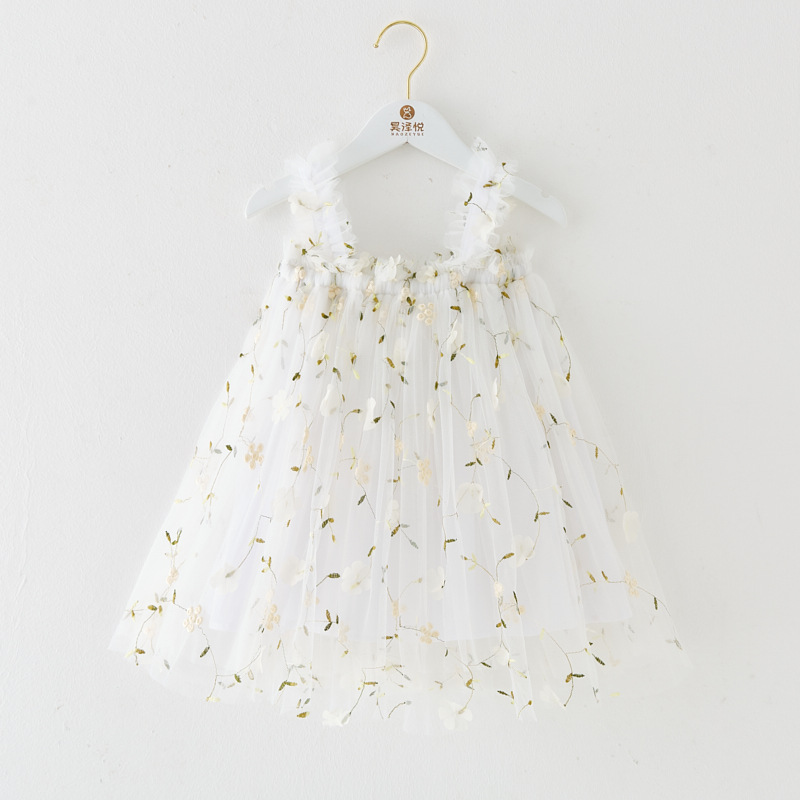 새로운 어린이 치마 어린이 자수 나비 슬립 스커트 달콤한 공주 스커트 메쉬 투투 스커트 여자 원피스