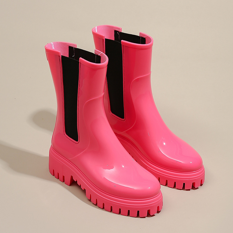 크로스 보더 패션 레인 부츠 여성용 탄성 두꺼운 바닥 내마 모성 물 신발 미끄럼 방지 주방 고무 신발 야외 방수 세차 신발 여성