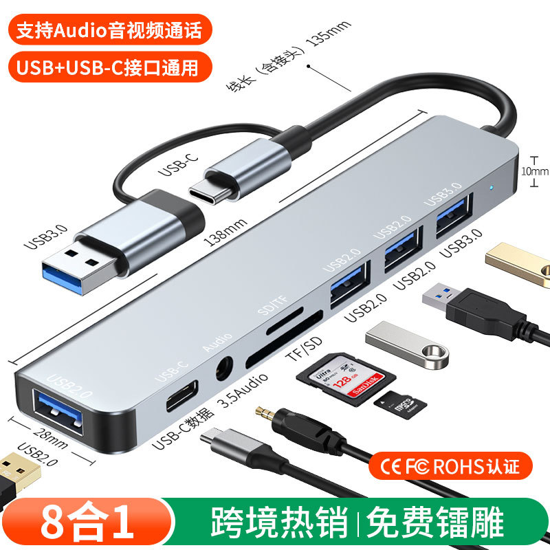 크로스보더 USB 타입 C 허브 7-8 in 1 USB 플래시 드라이브 노트북 태블릿 어댑터 확장기스토어 가기