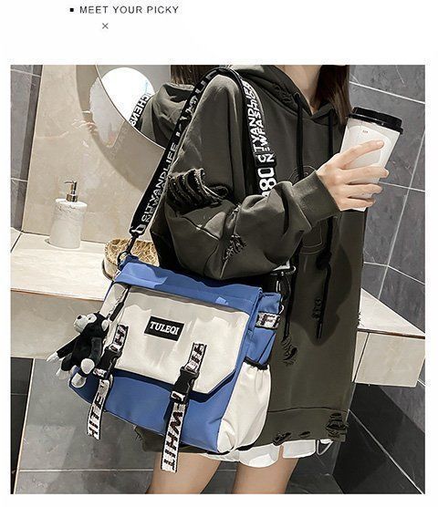 트렌디 브랜드 크로스백 남성 일본 캐주얼 숄더백 트렌디 학생 대용량 크로스 백팩 툴링 여성 메신저백