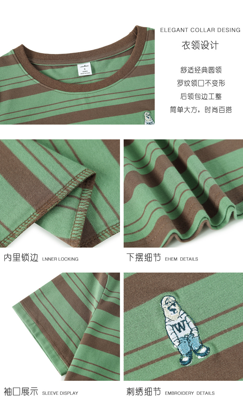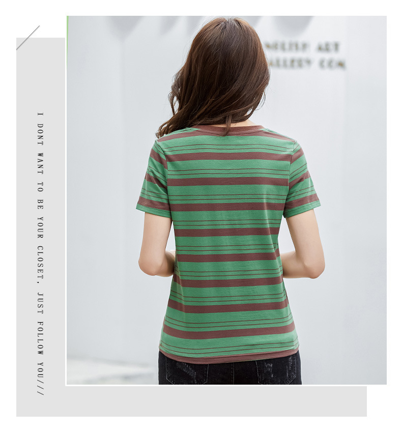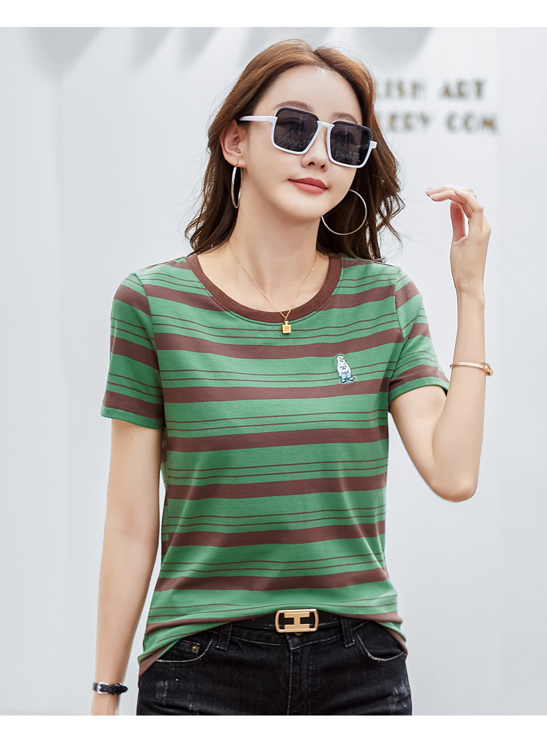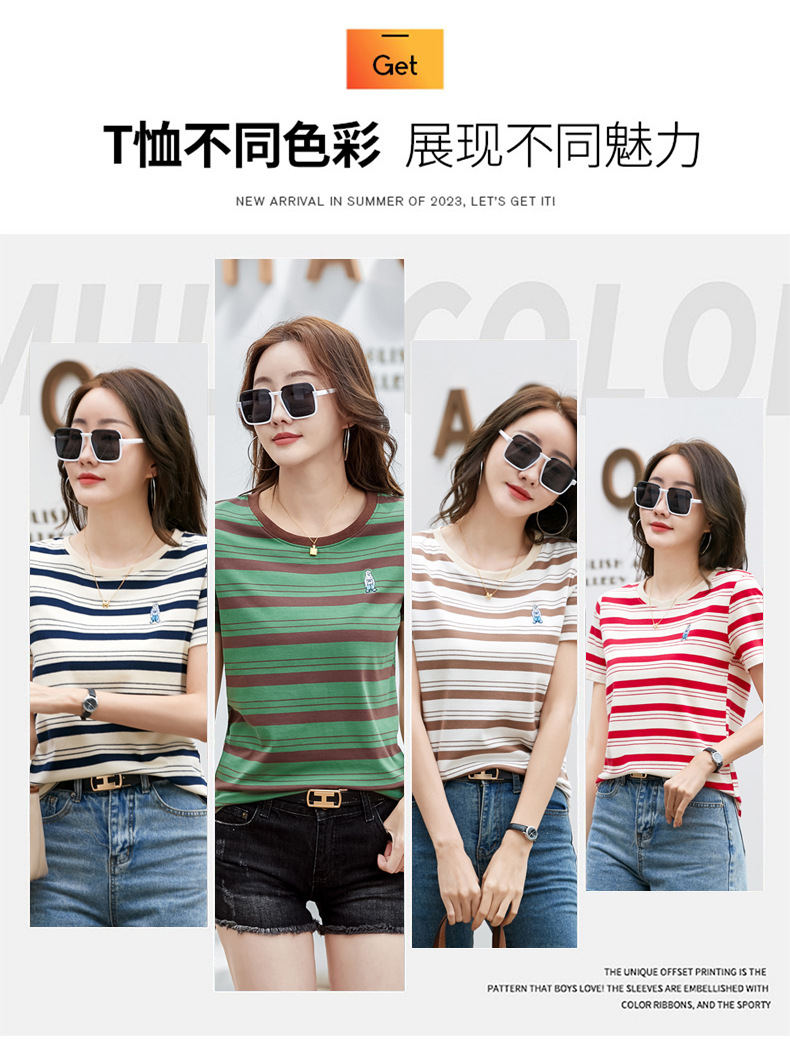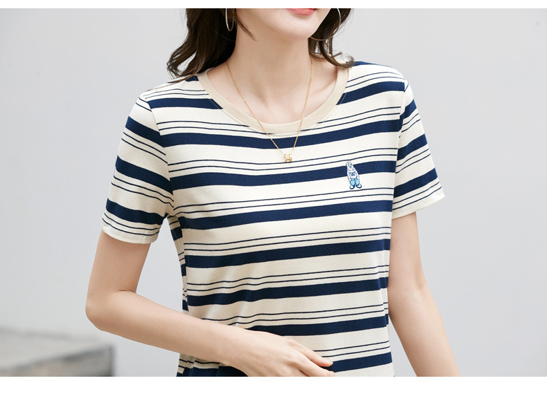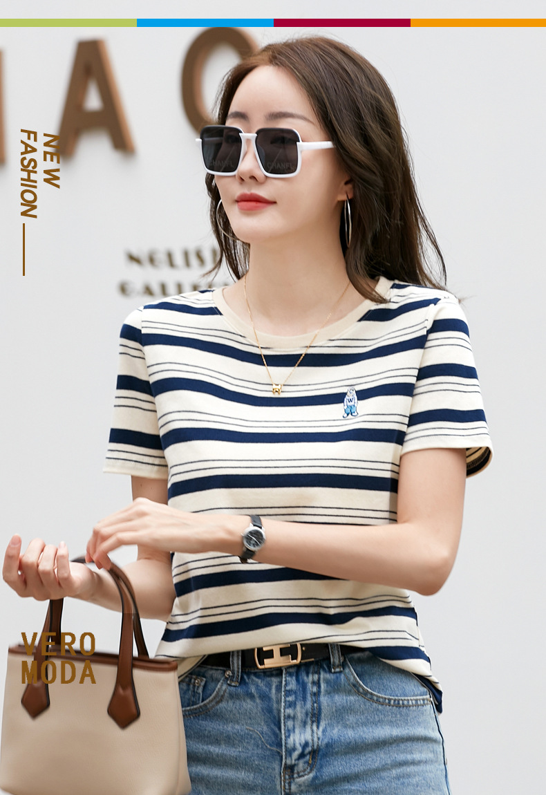 399 한국식 스트라이프 코튼 반팔 티셔츠 여성용 여름 캐주얼 틈새 디자인 시크 자수 베어 루즈한 탑스토어 가기