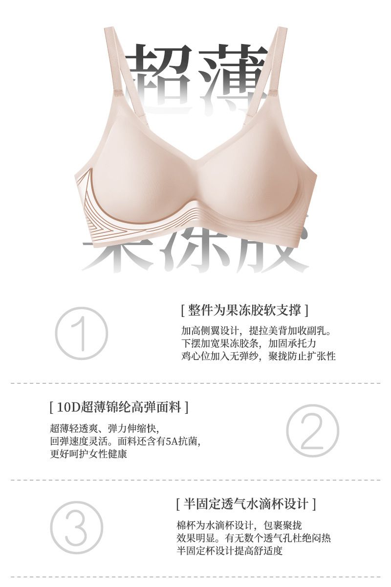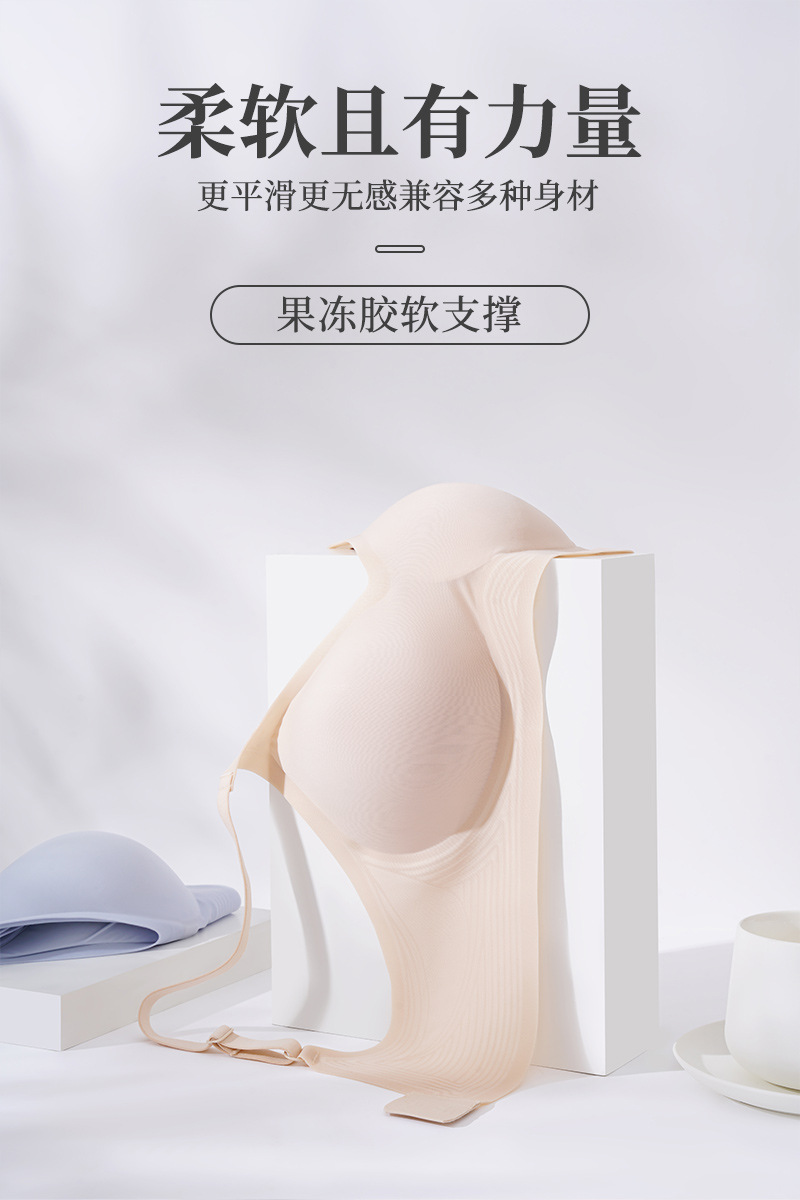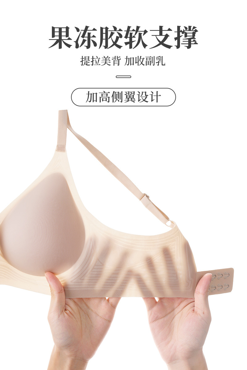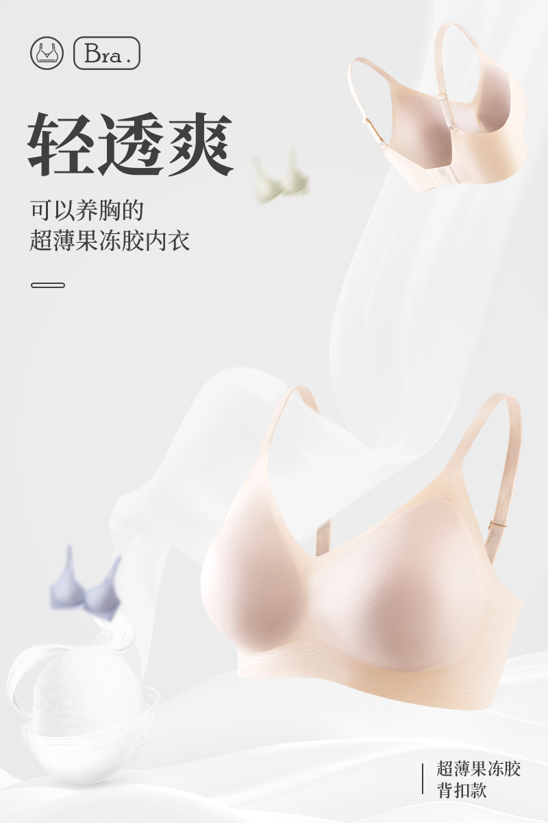 백 버튼 원활한 속옷 큰 가슴 작은 푸시 업 울트라-얇은 젤리 스트립 소프트 지원 스틸 링 없음 여성을위한 아름다운 백 브라